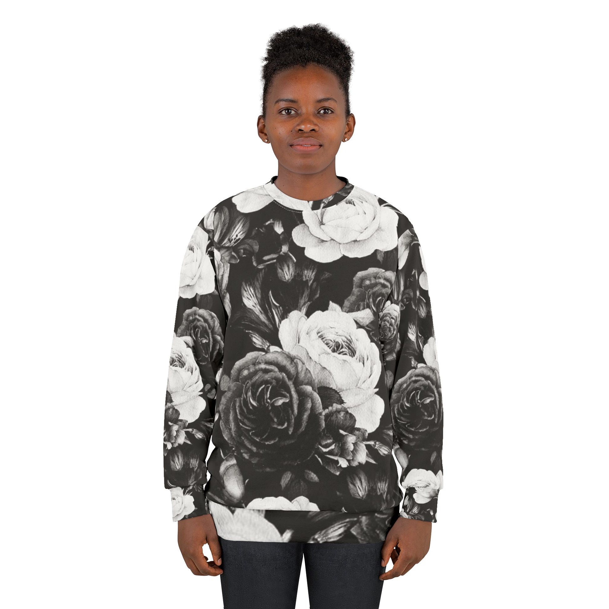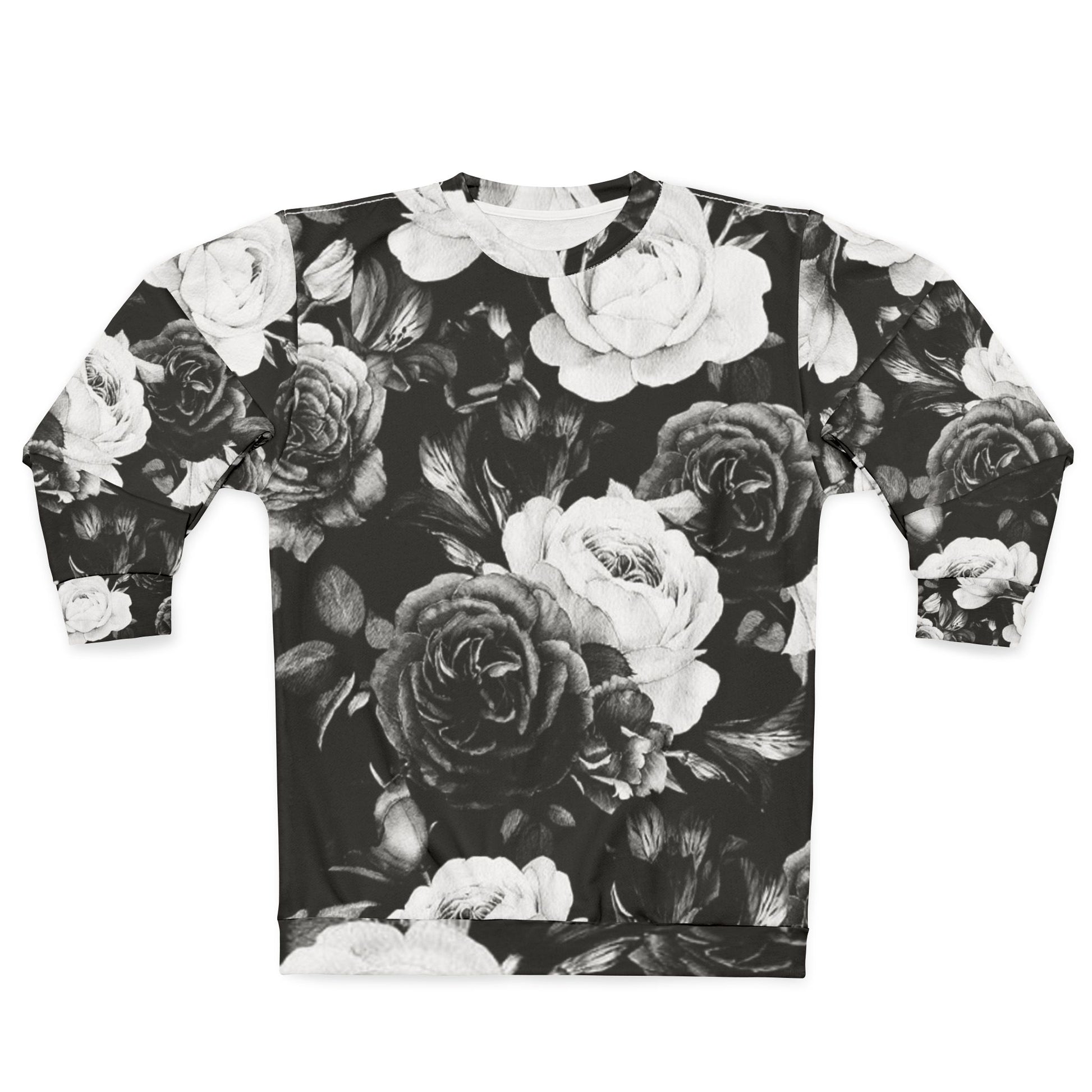 Black & White Floral Crewneck Sweatshirt – Custom Cut & Sewn