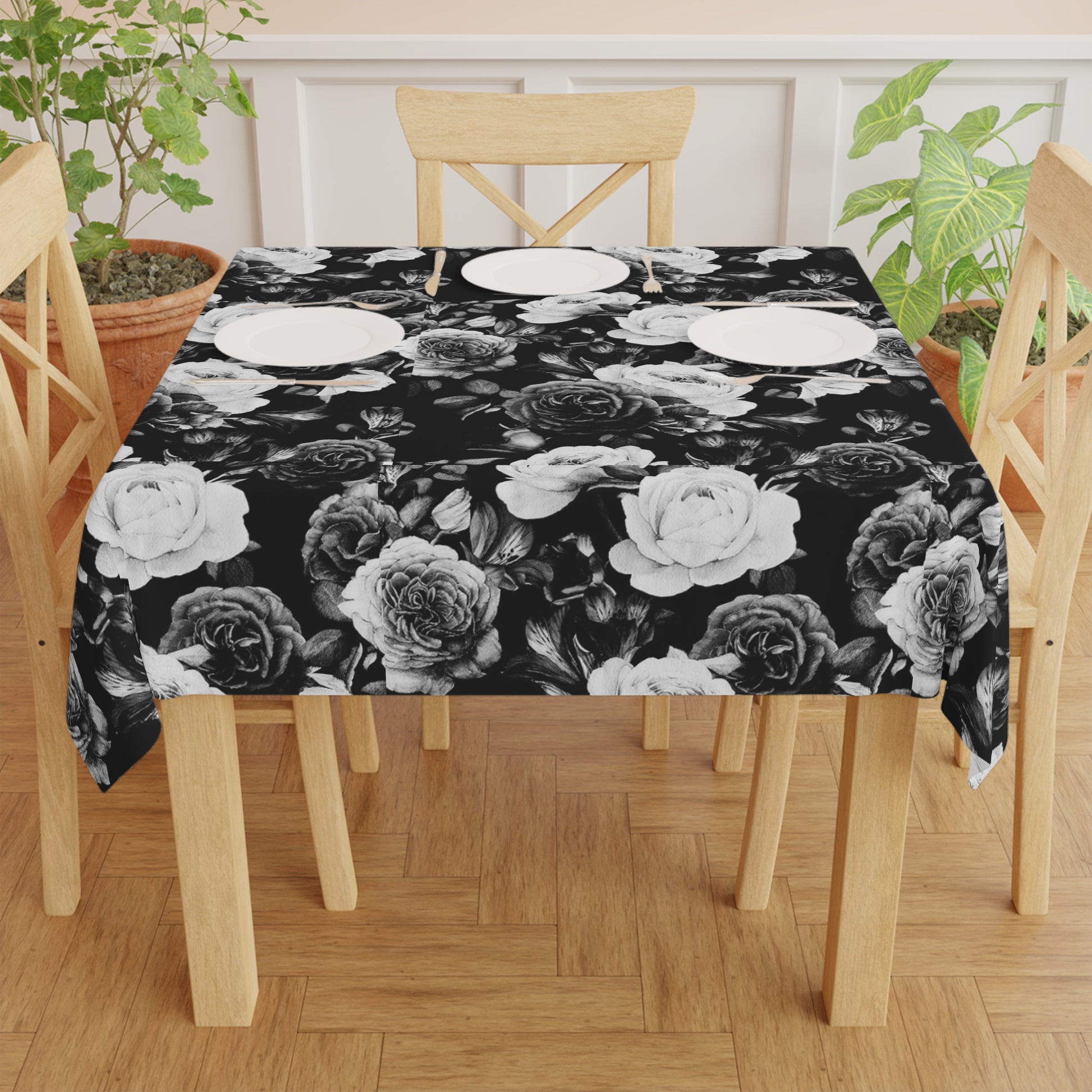 Black and White Floral Design Tablecloth