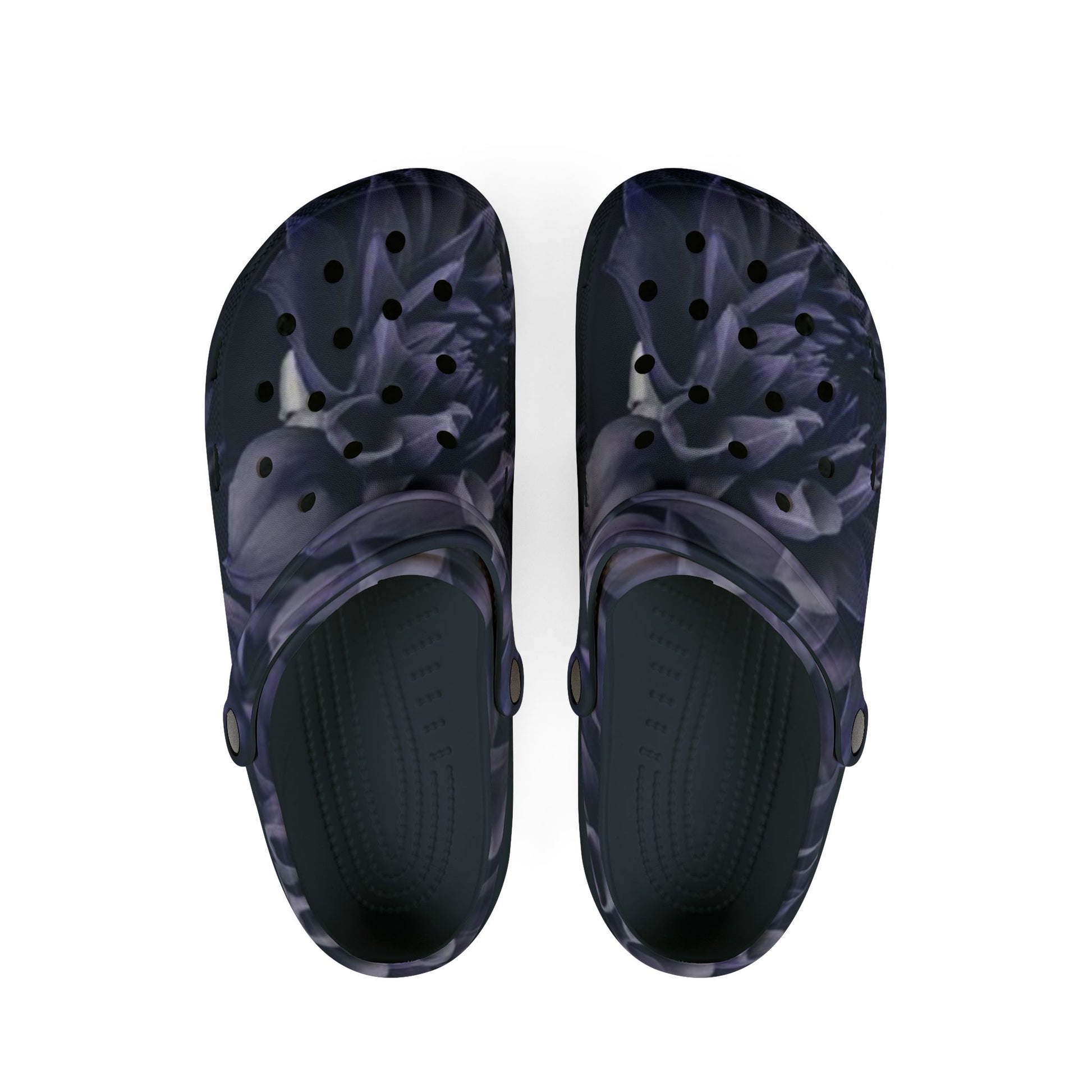 Blue Dahlia Shoes made of EVA Foam Rubber, offering a trendy and comfortable wearing experience. Perfect for indoor and outdoor use, with anti-slip performance. Ideal for those who love floral designs and want a versatile shoe option. Great for casual outings and everyday wear, especially during spring and summer.