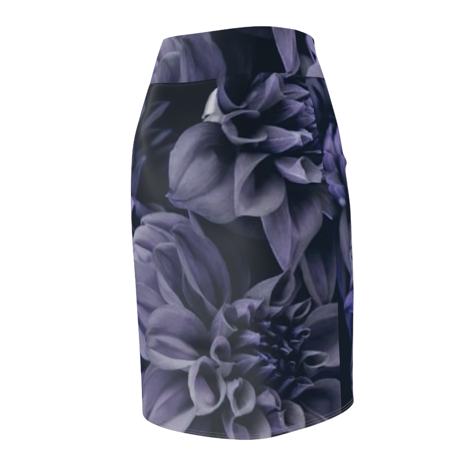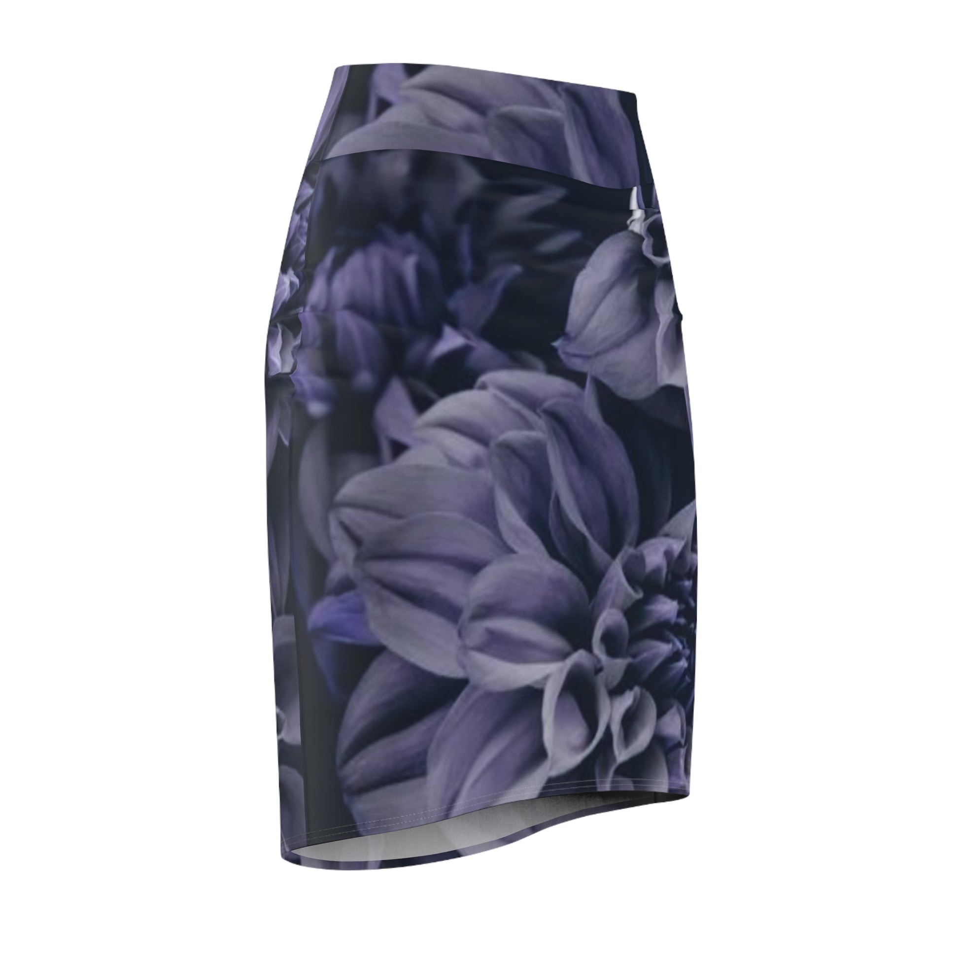 Comfortable and soft, this high quality blue dahlia pencil skirt is cut close to the body. Inspired by the freedom of creativity, it's perfect for standing out on any occasion.