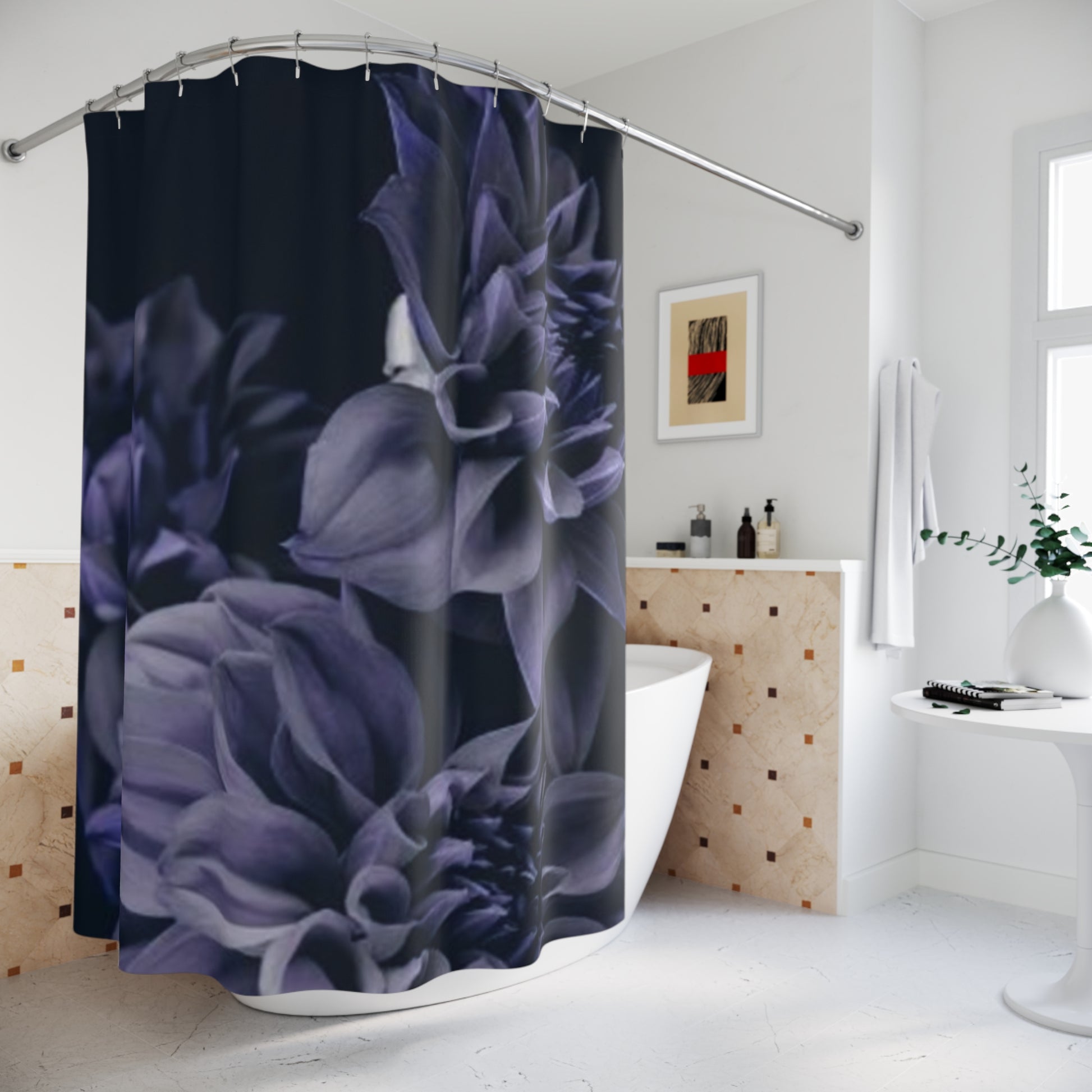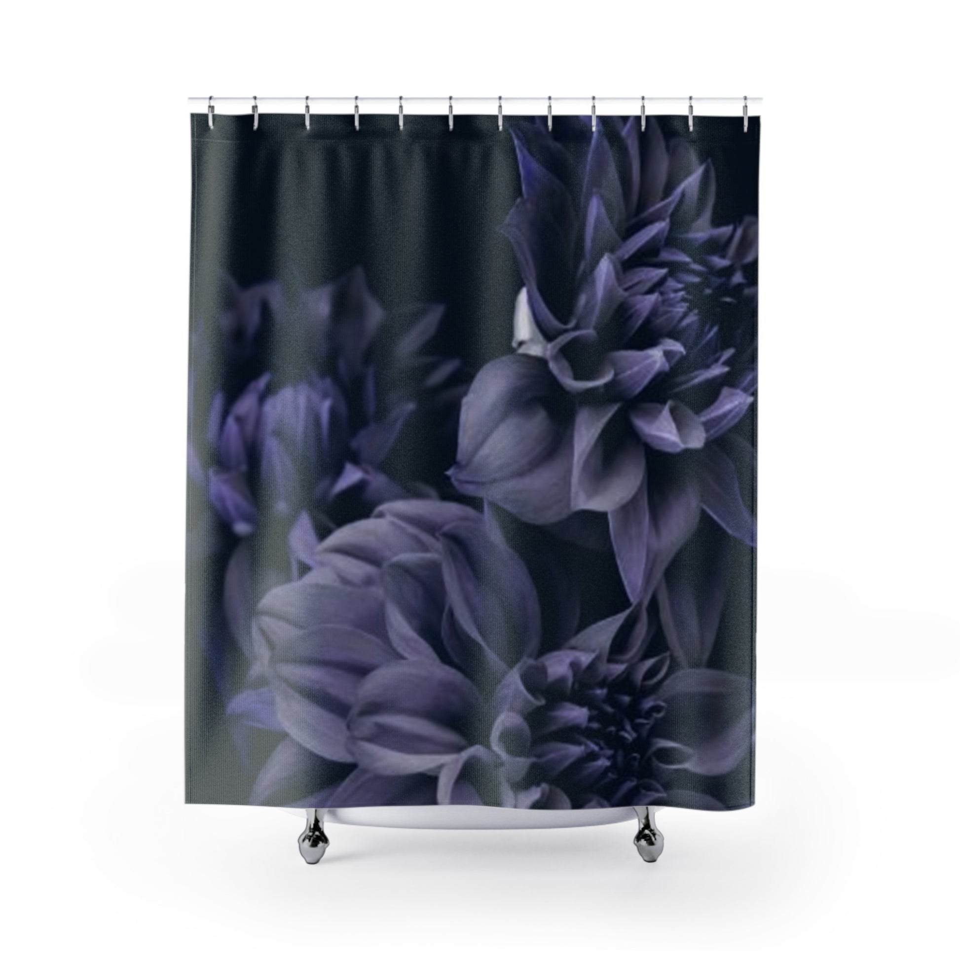 Elevate your bathroom decor with this beautiful blue dahlia curtain. Made of 100% polyester, it is strong, durable, and dries quickly. With 12 buttonholes at the top for easy hook placement, this one-sided print shower curtain is a stylish addition to any bathroom. Perfect for those who love floral designs and want to add a touch of nature to their space. Ideal for home decorators, housewarming gifts, and those looking to refresh their bathroom for spring or summer.