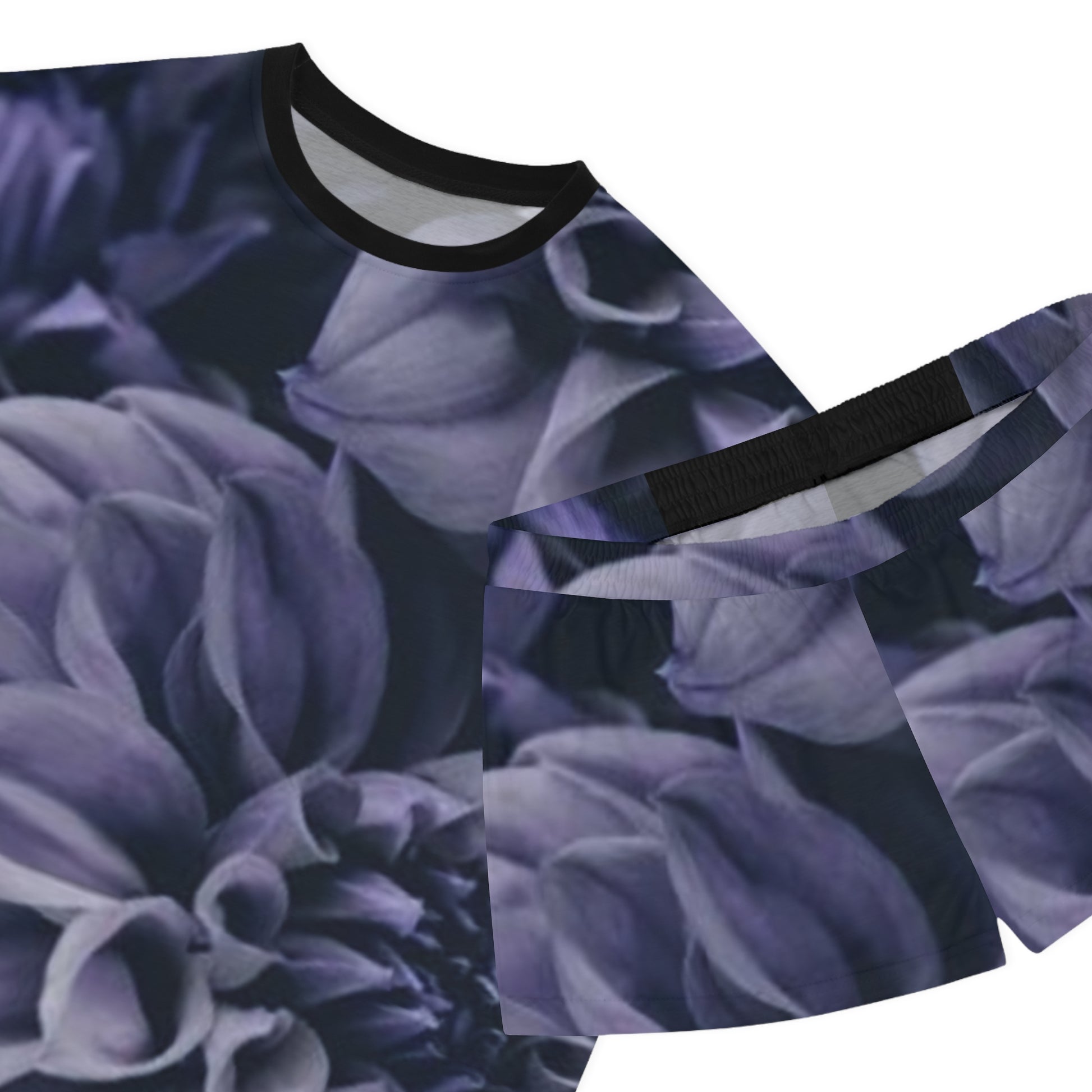 Why pick between comfort or style when you can have both? These blue dahlia women's short pajama two-piece set come with a relaxed fit, a ribbed collar and feature no sleeve seams. Add your designs in all-over print, and create a cozy staple that is bound to be loved.