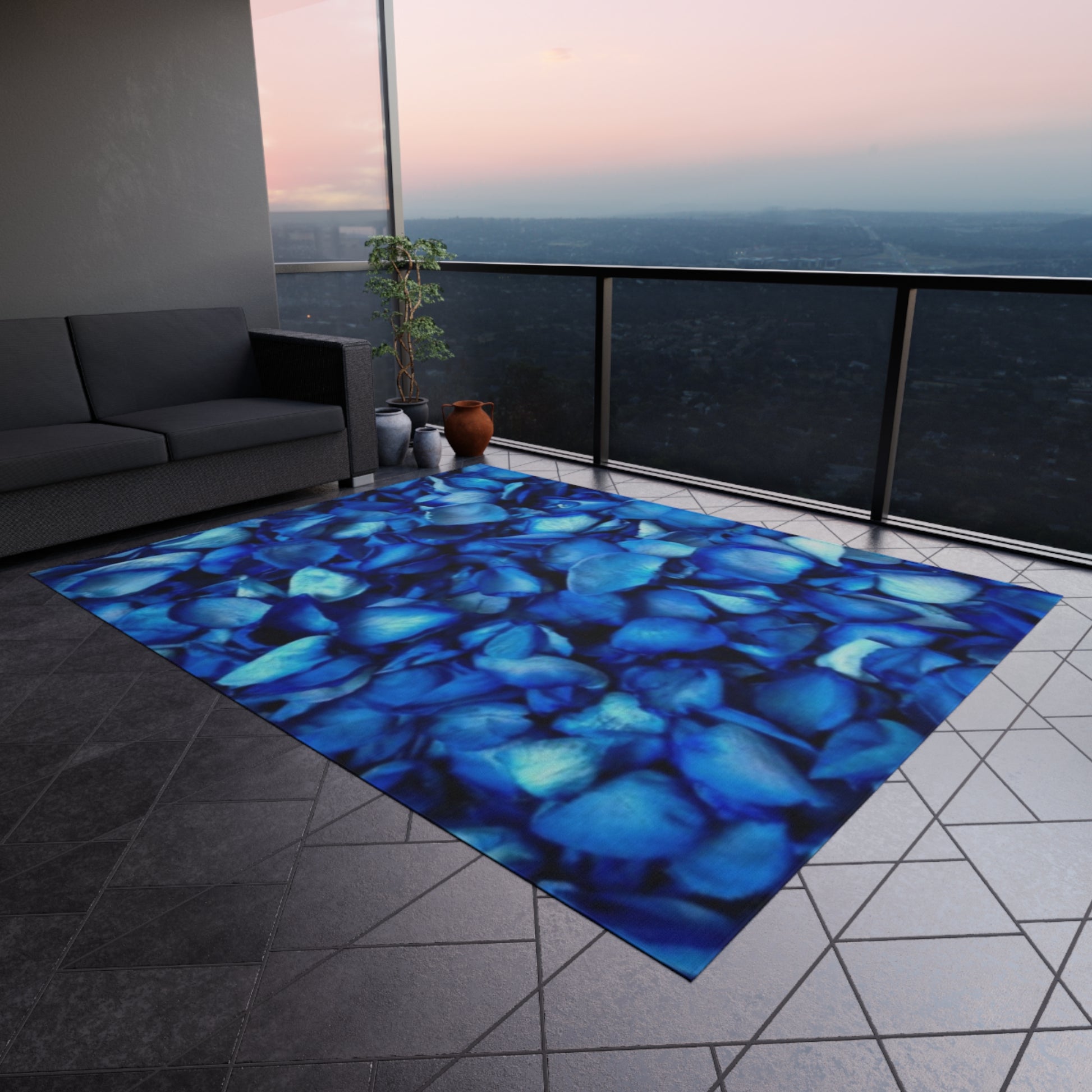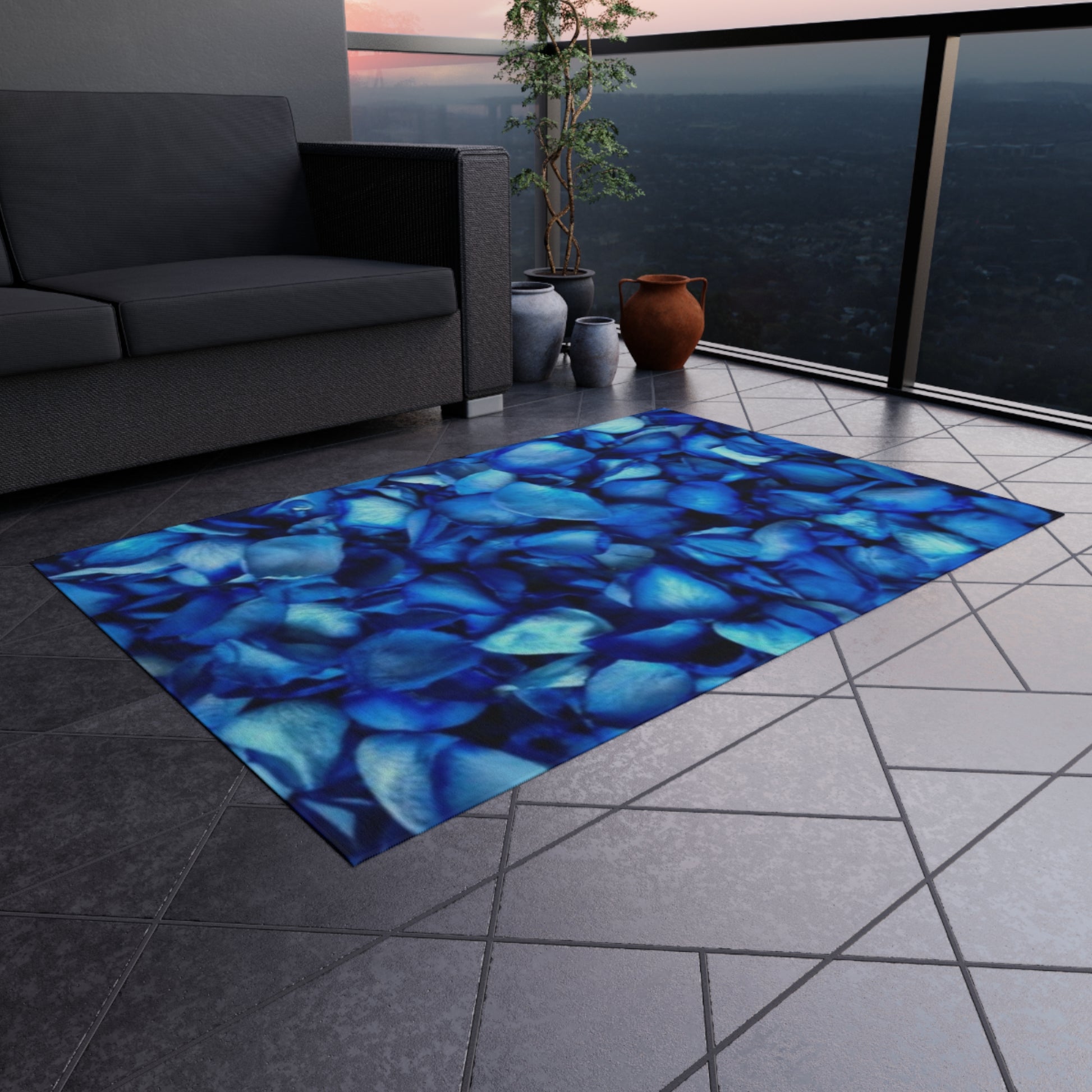 Blue Petals Outdoor Rug