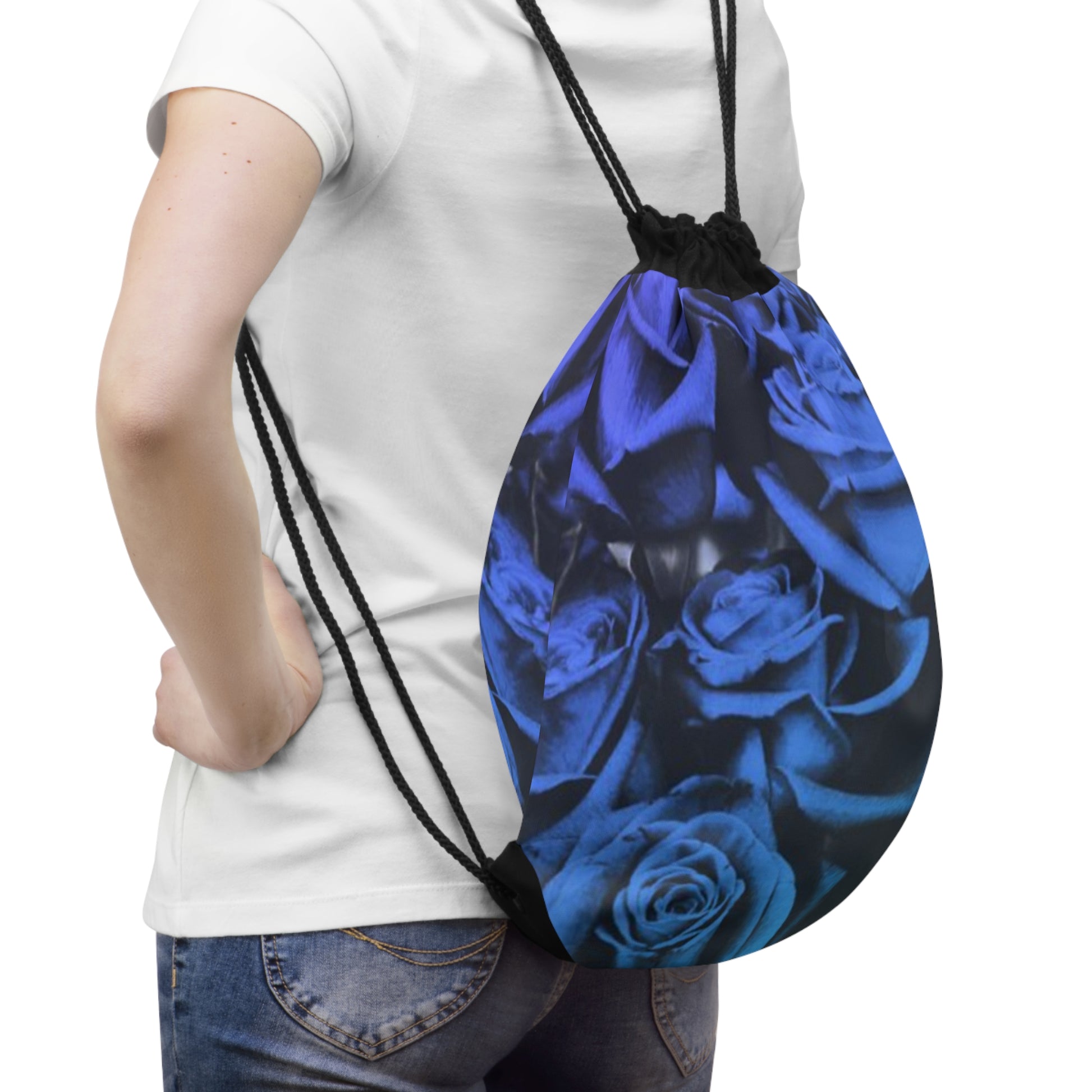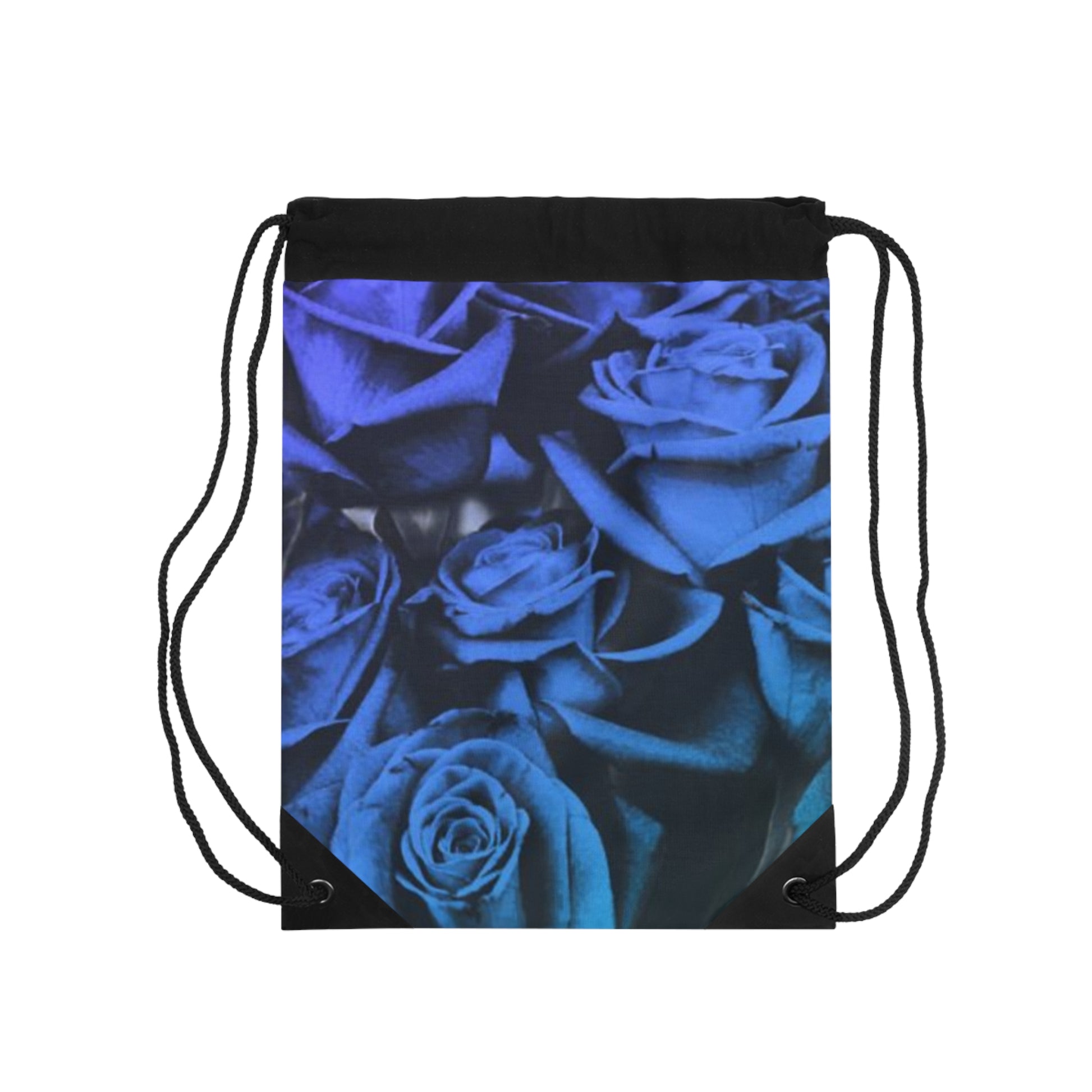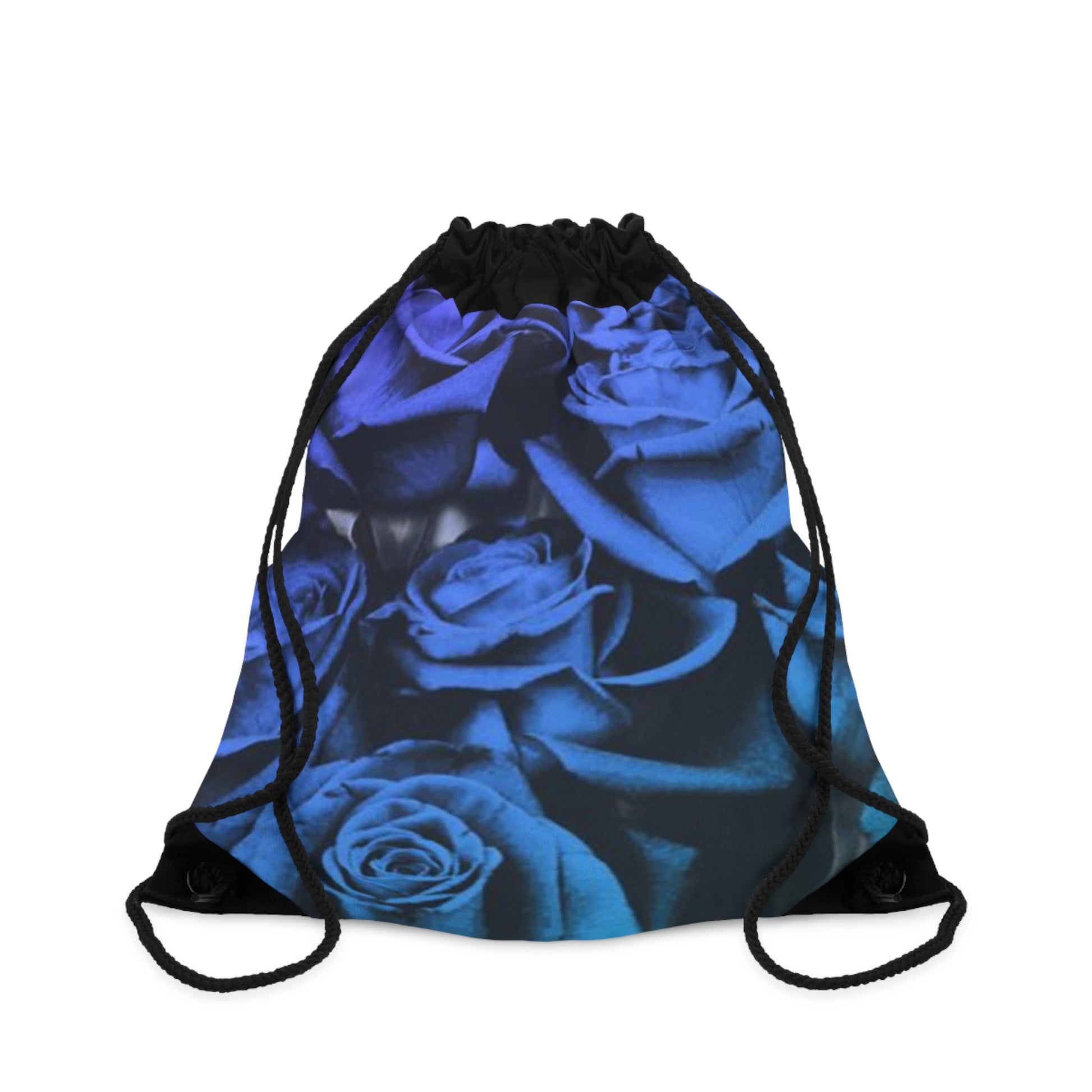 A Floral Drawstring Bag made of 100% Polyester fabric with metal grommets at the corners. Spacious and fully lined with black sheeting, it also features a small zipper pocket inside. Perfect for carrying essentials in style.