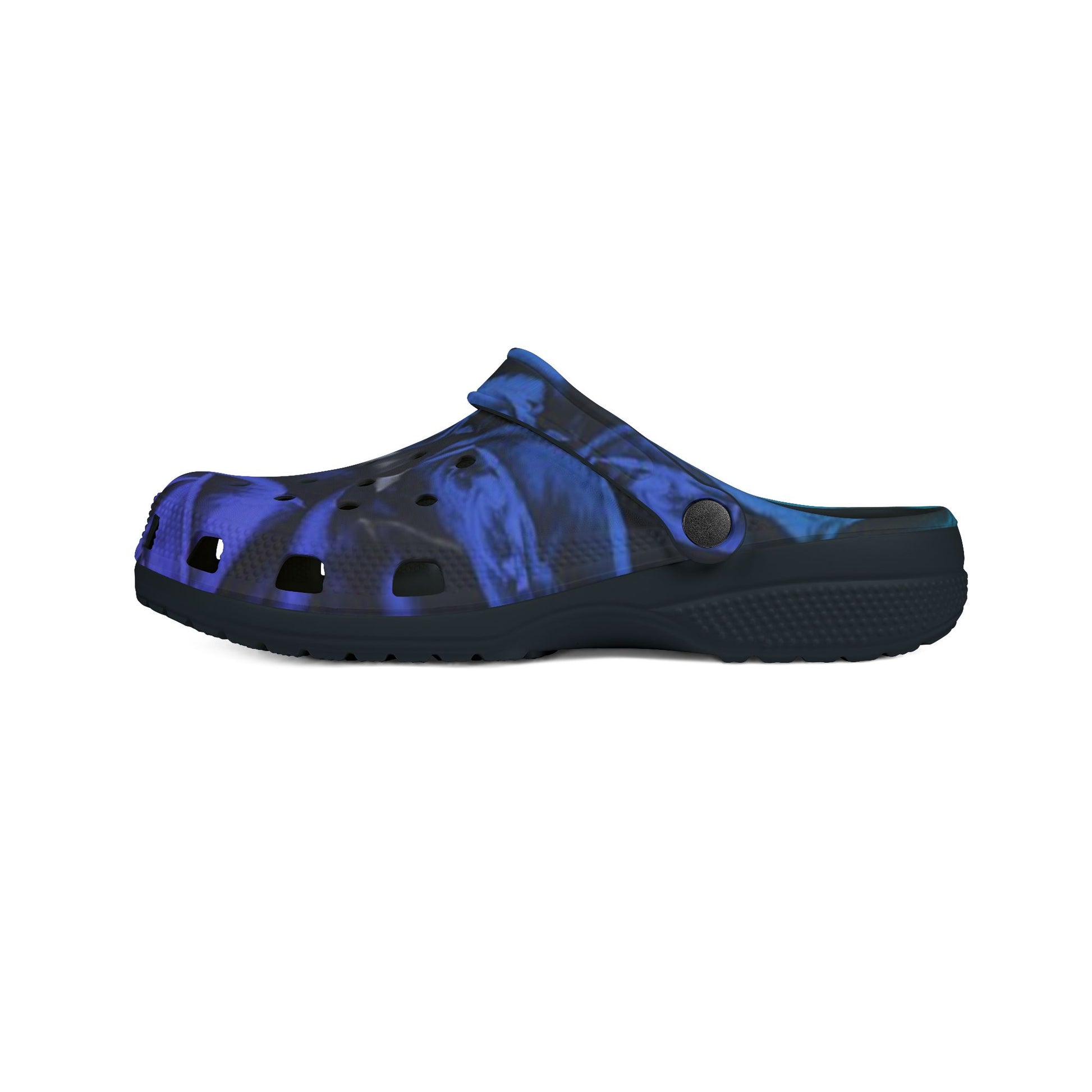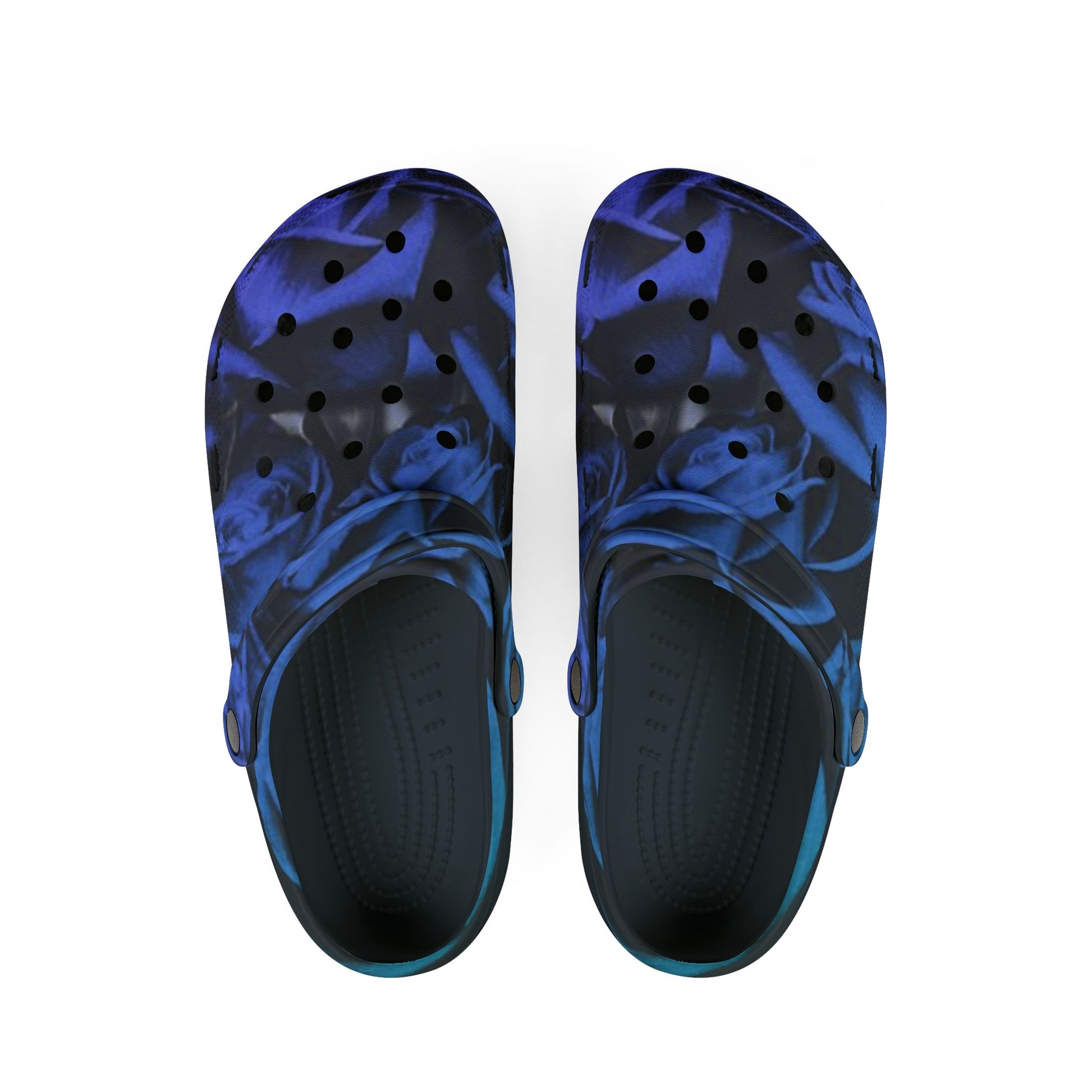 Blue Roses Shoes made of EVA Foam Rubber, offering a trendy and comfortable wearing experience. Perfect for indoor and outdoor use, with anti-slip performance. Ideal for those who love floral designs and want a versatile shoe option. Great for casual outings and everyday wear, especially during spring and summer.