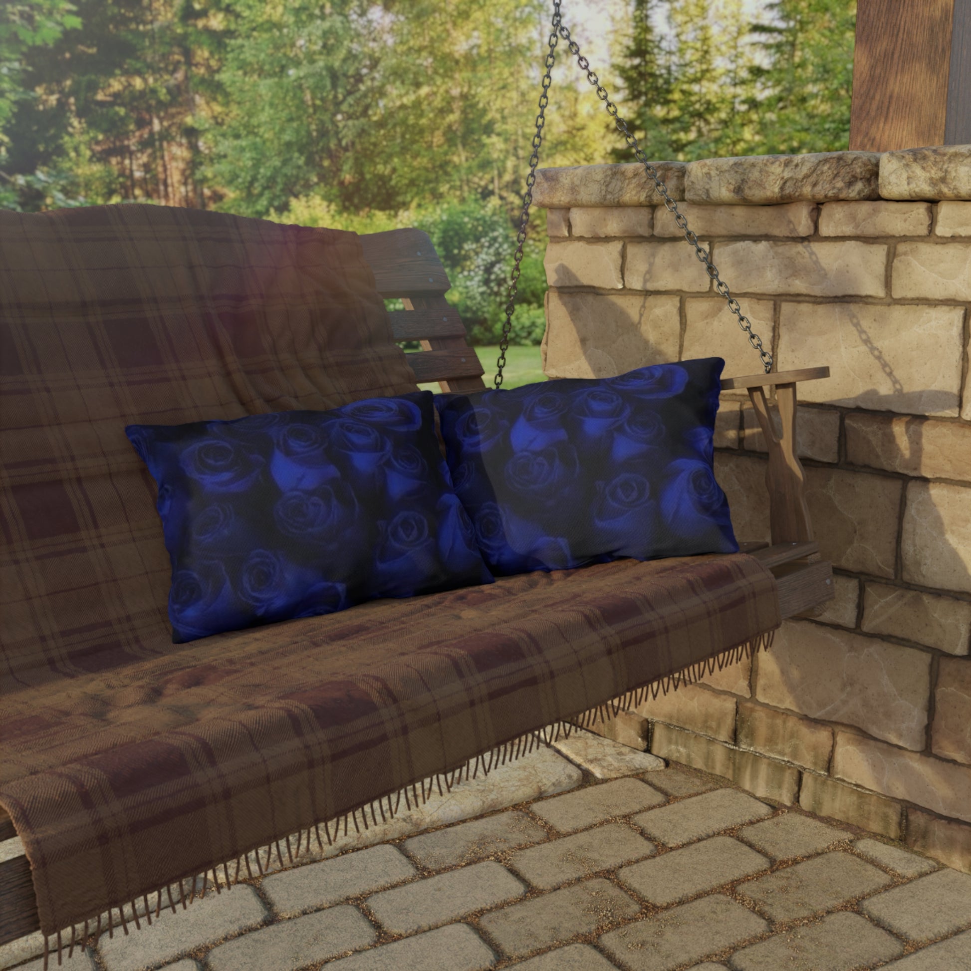 Dark Blue Roses Outdoor Pillow