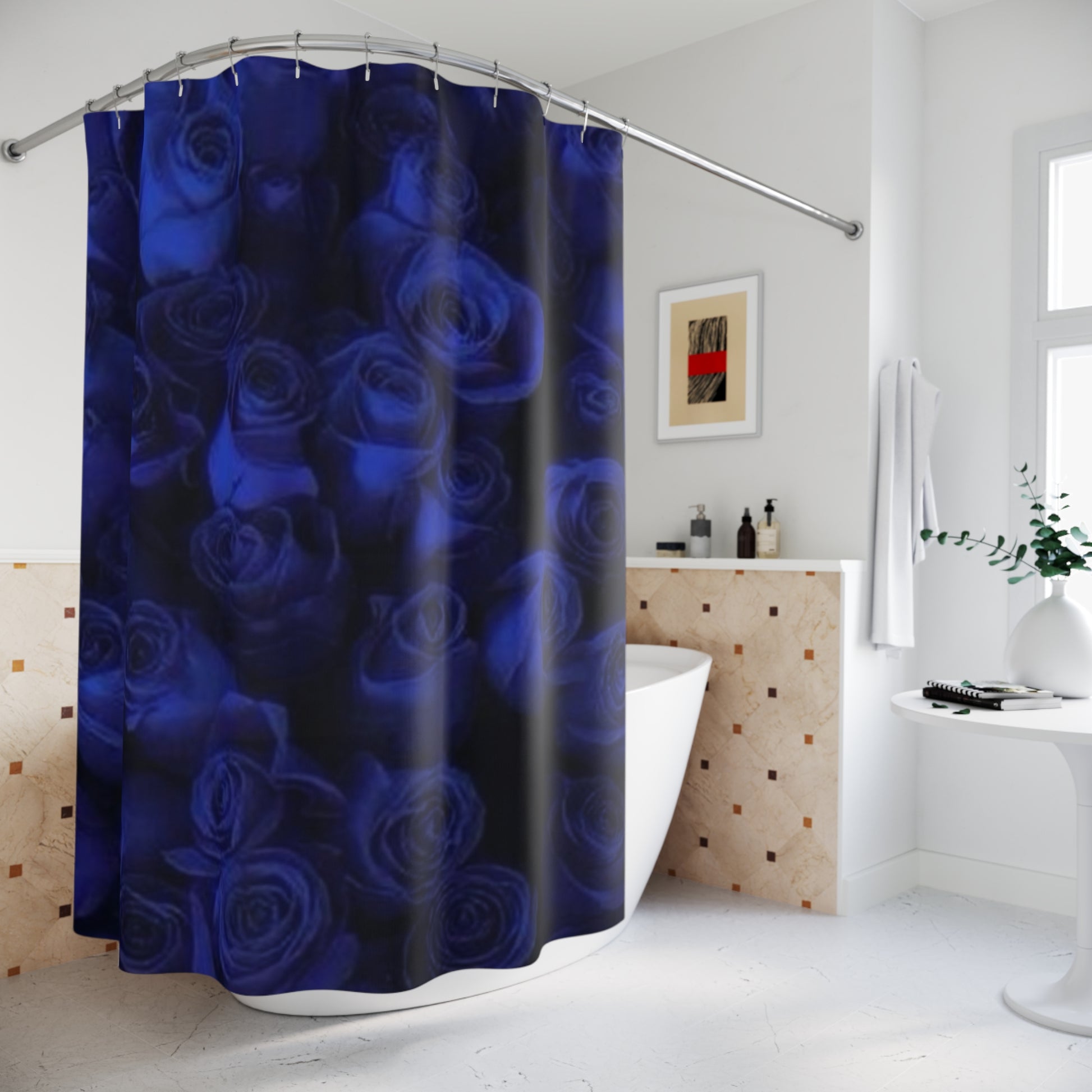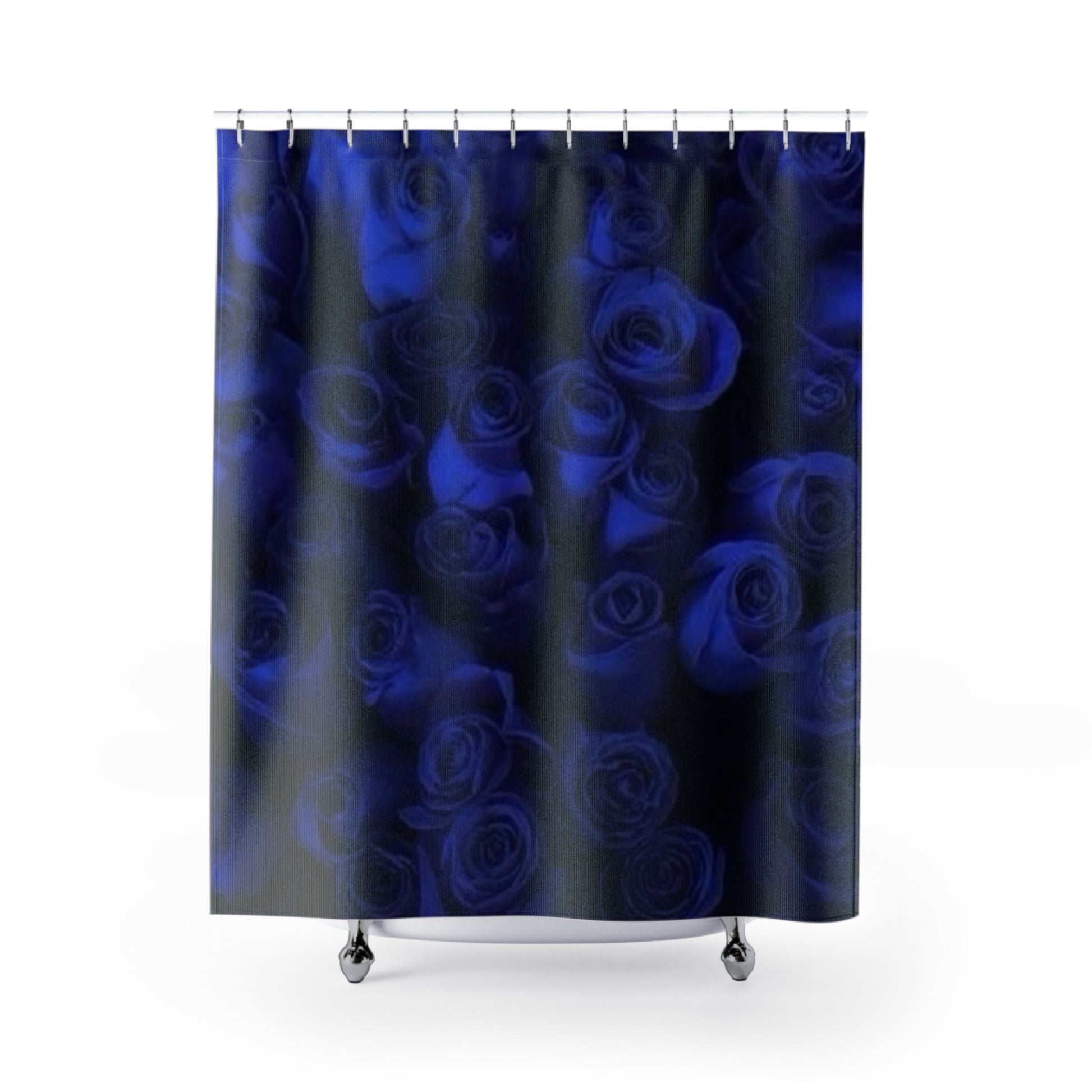 Elevate your bathroom decor with this beautiful dark blue roses shower curtain. Made of 100% polyester, it is strong, durable, and dries quickly. With 12 buttonholes at the top for easy hook placement, this one-sided print shower curtain is a stylish addition to any bathroom. Perfect for those who love floral designs and want to add a touch of nature to their space. Ideal for home decorators, housewarming gifts, and those looking to refresh their bathroom for spring or summer.