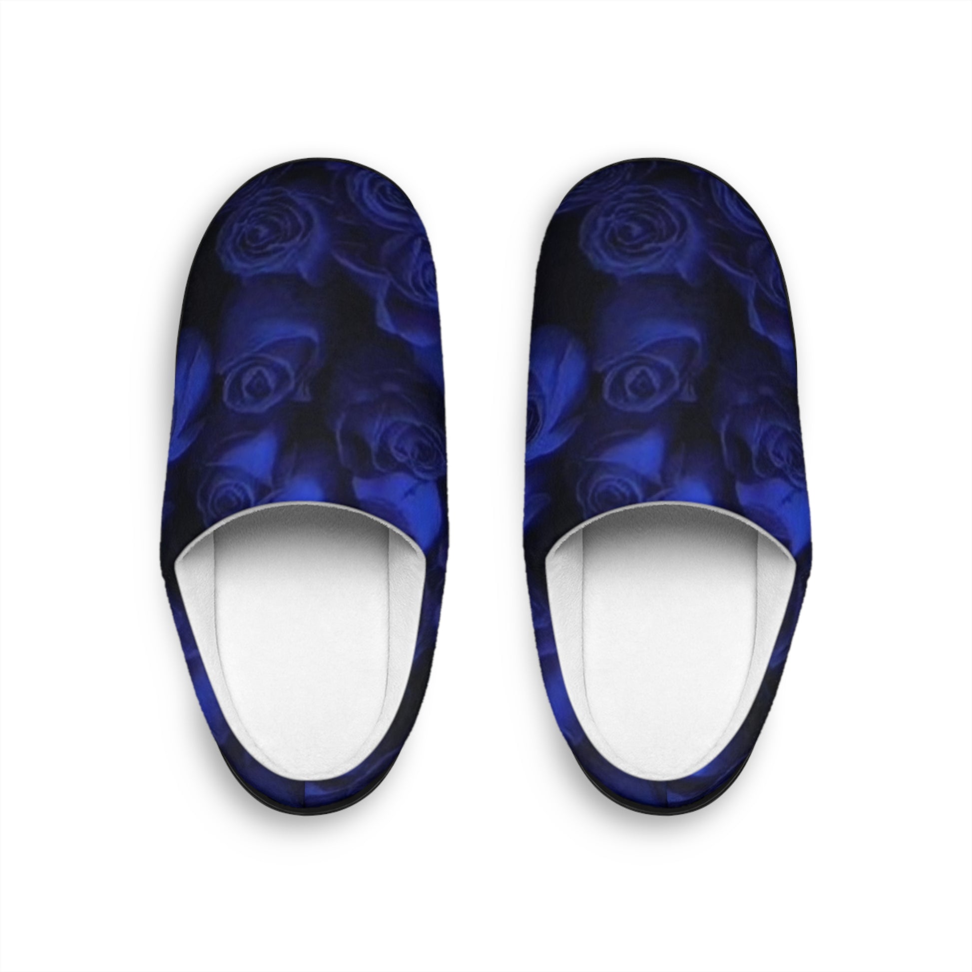 Dark Blue Roses Slippers that offer a cozy and comfortable feel for lounging around the house. Perfect for women looking to add a touch of style to their indoor relaxation routine. Ideal for gifting during the holidays and special occasions.