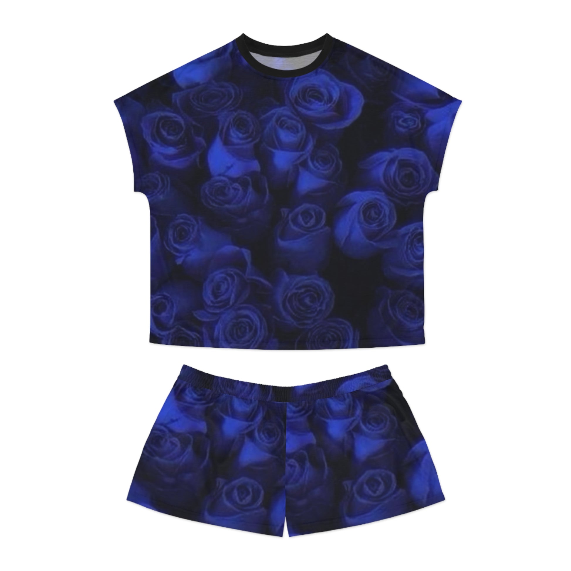 Why pick between comfort or style when you can have both? These dark blue roses women's short pajama two-piece set come with a relaxed fit, a ribbed collar and feature no sleeve seams. Add your designs in all-over print, and create a cozy staple that is bound to be loved.