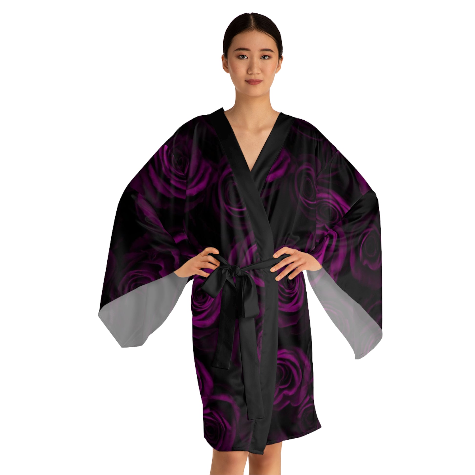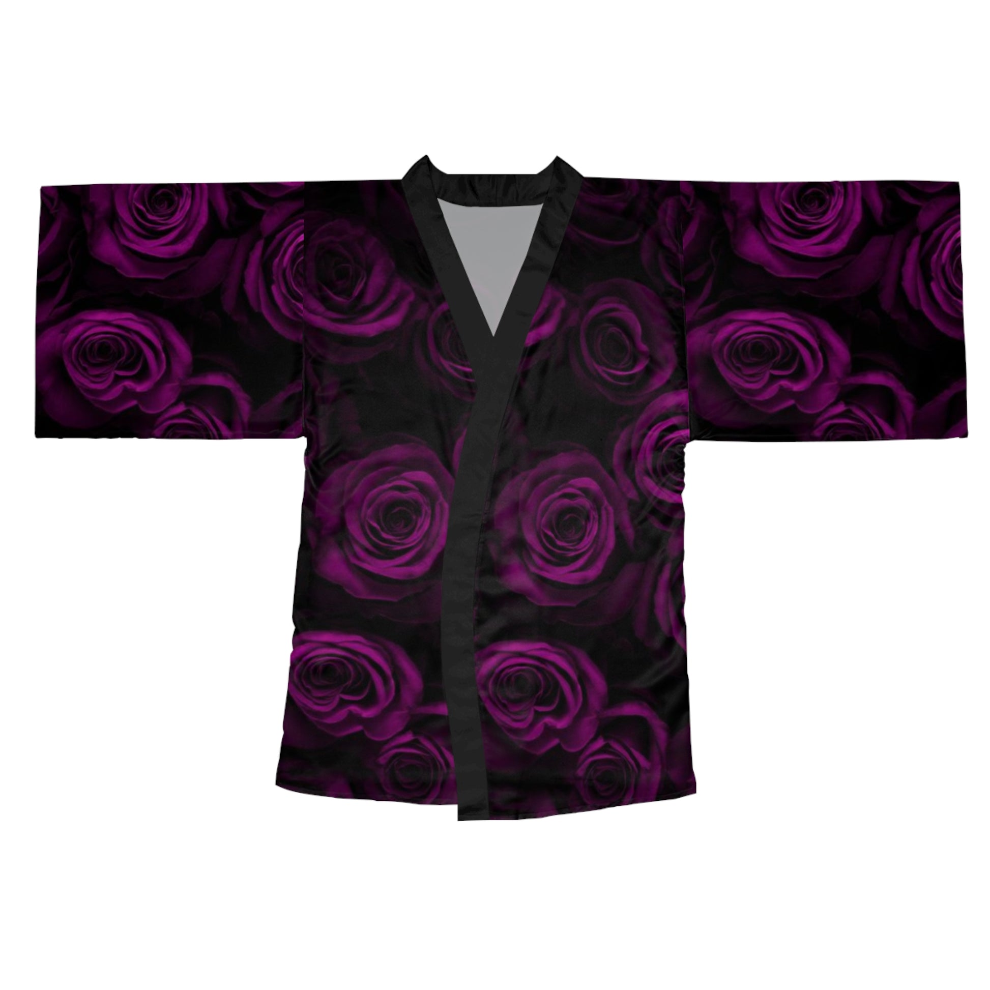 This Dark Purple Roses Kimono Robe exudes elegance and luxury, perfect for lounging at home or attending a fancy party. The smooth feel and figure-flattering shape make it a versatile and stylish addition to anyone's wardrobe. Ideal for those who enjoy luxurious loungewear or unique party outfits. Perfect for special occasions like Valentine's Day, anniversaries, or spa days.