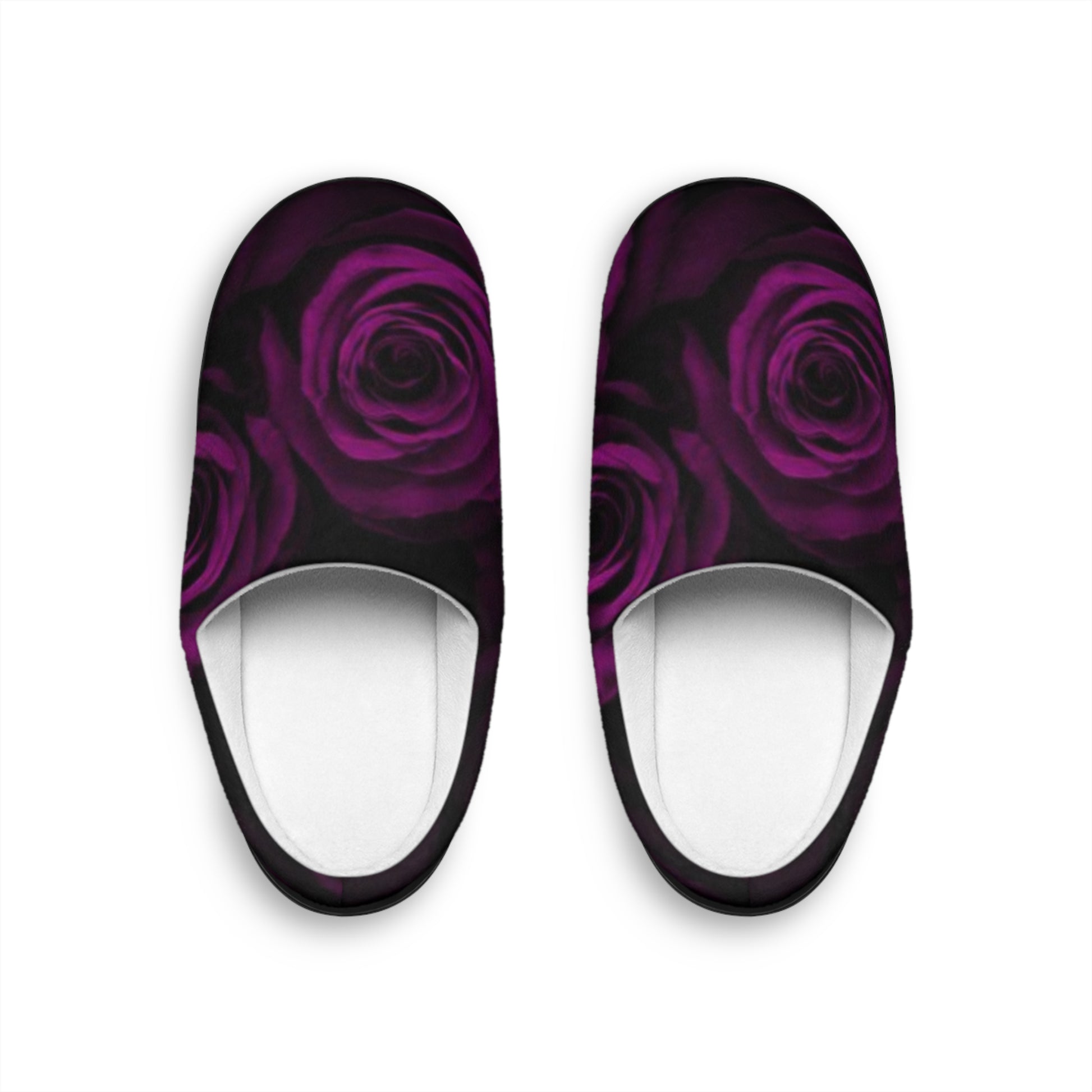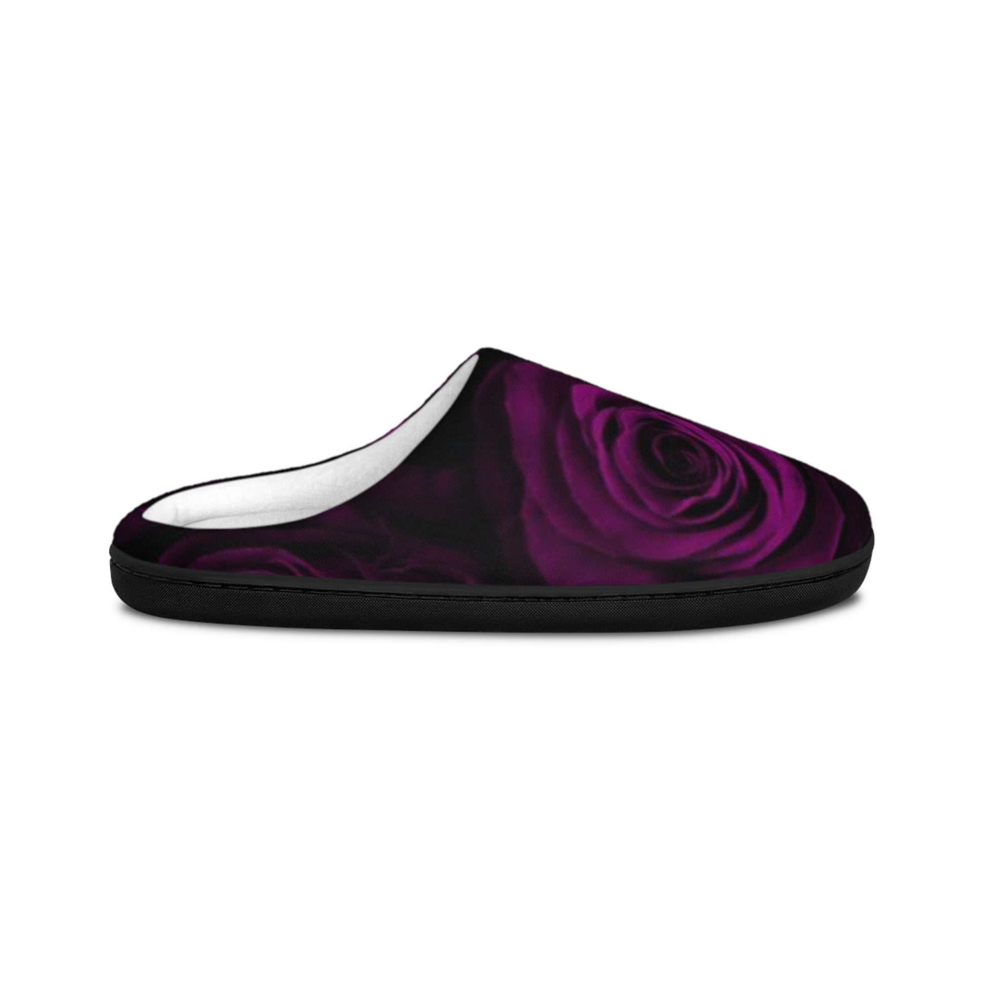 Dark Purple Roses Slippers that offer a cozy and comfortable feel for lounging around the house. Perfect for women looking to add a touch of style to their indoor relaxation routine. Ideal for gifting during the holidays and special occasions.