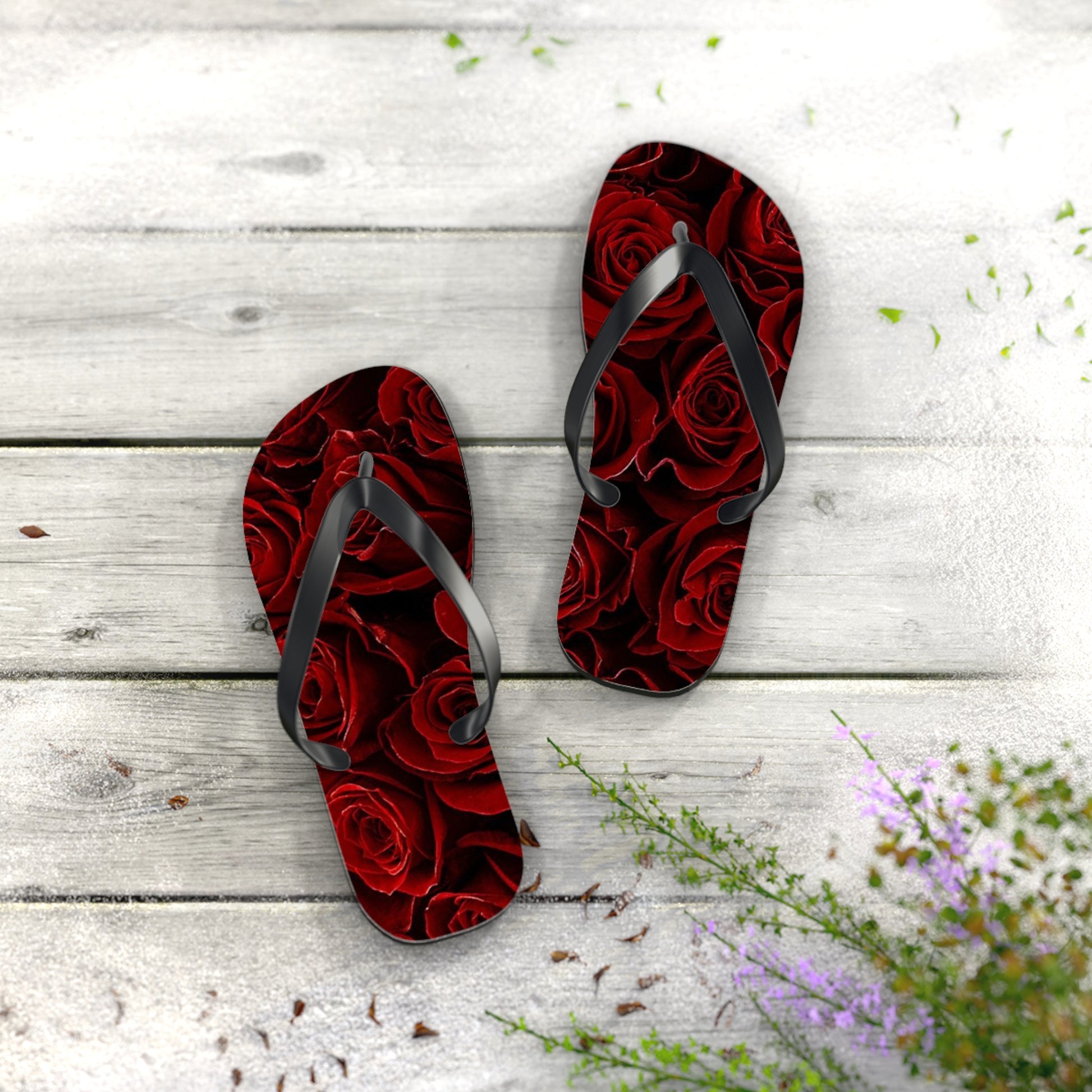 All-day comfort is the name of the game when summer is on. These red roses flip flops can now take on your unique designs add some character to your summer escapades. With an easy slip-on design, a cushioned footbed, these flip flops are a guaranteed summer hit.
