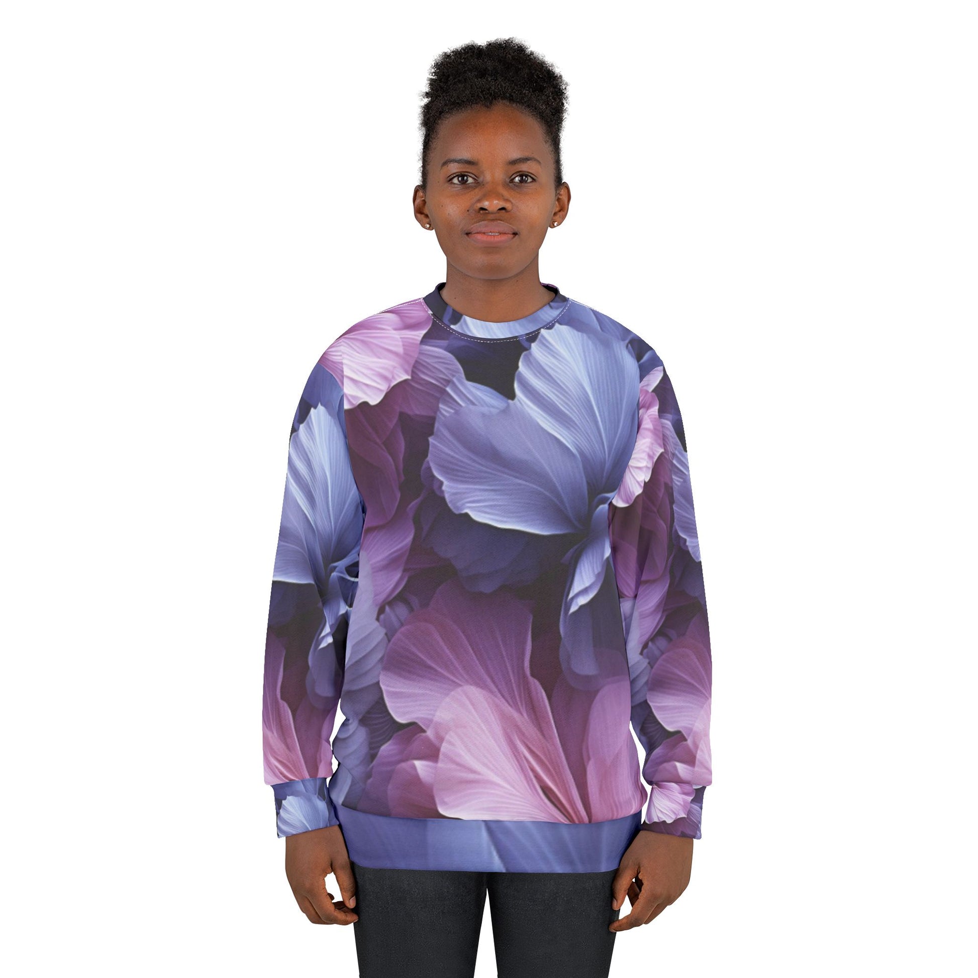 This floral crewneck sweatshirt is the perfect example of cool. With quality all-over printing capabilities, you won’t be worried about white lines at the seams. This fleece is custom cut and sewn, featuring a crew neck and set-in sleeves to keep you warm.