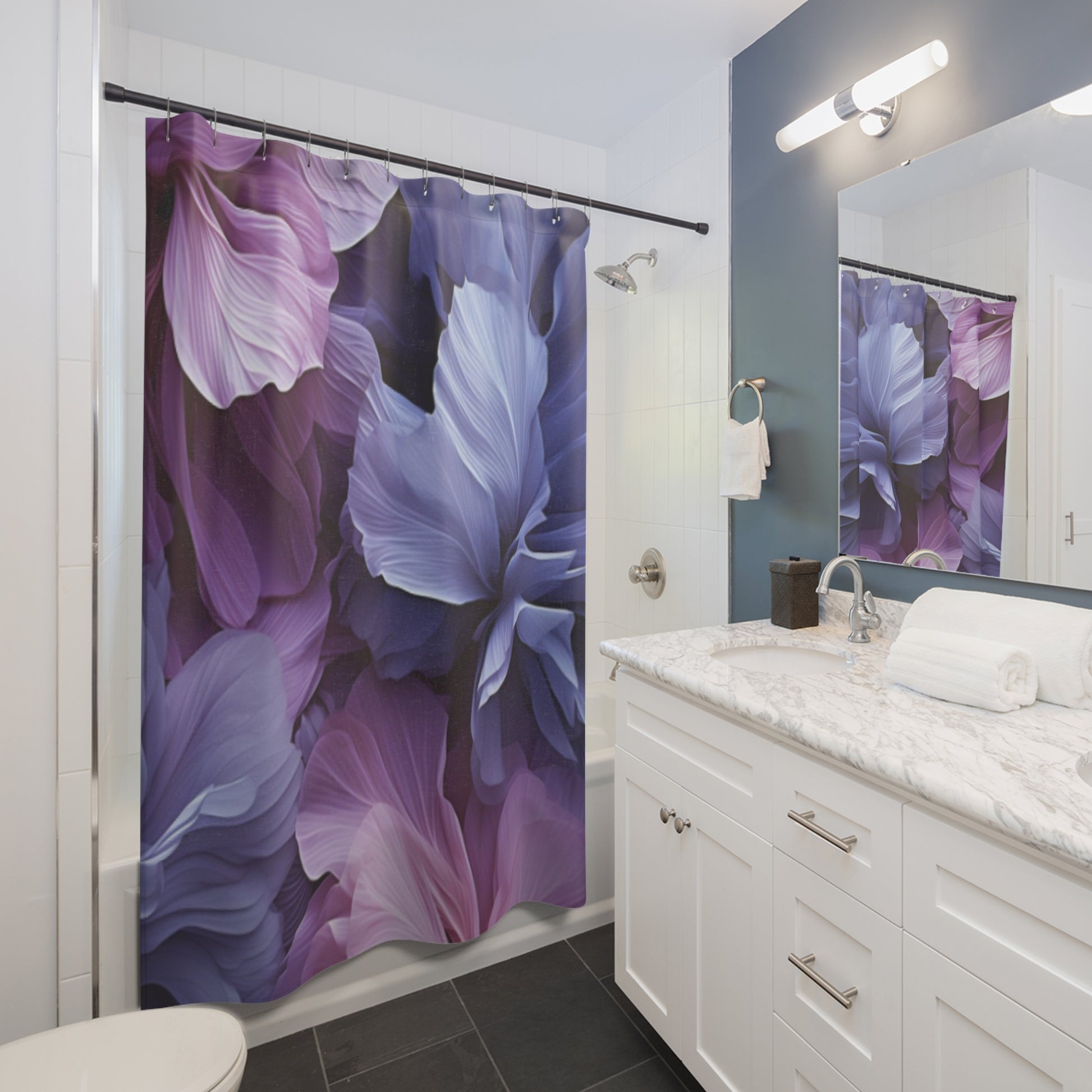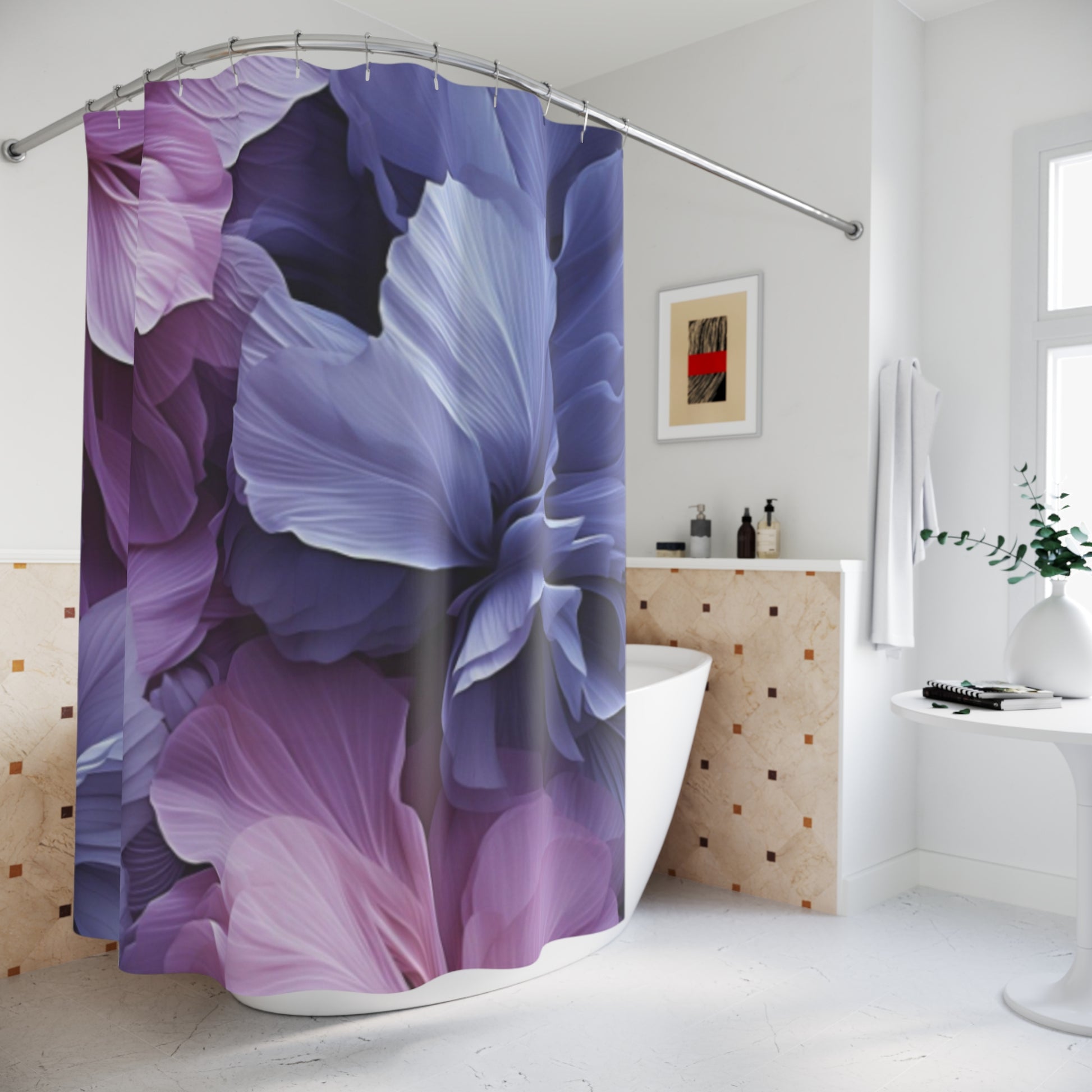 Elevate your bathroom decor with this beautiful floral flow shower curtain. Made of 100% polyester, it is strong, durable, and dries quickly. With 12 buttonholes at the top for easy hook placement, this one-sided print shower curtain is a stylish addition to any bathroom. Perfect for those who love floral designs and want to add a touch of nature to their space. Ideal for home decorators, housewarming gifts, and those looking to refresh their bathroom for spring or summer.
