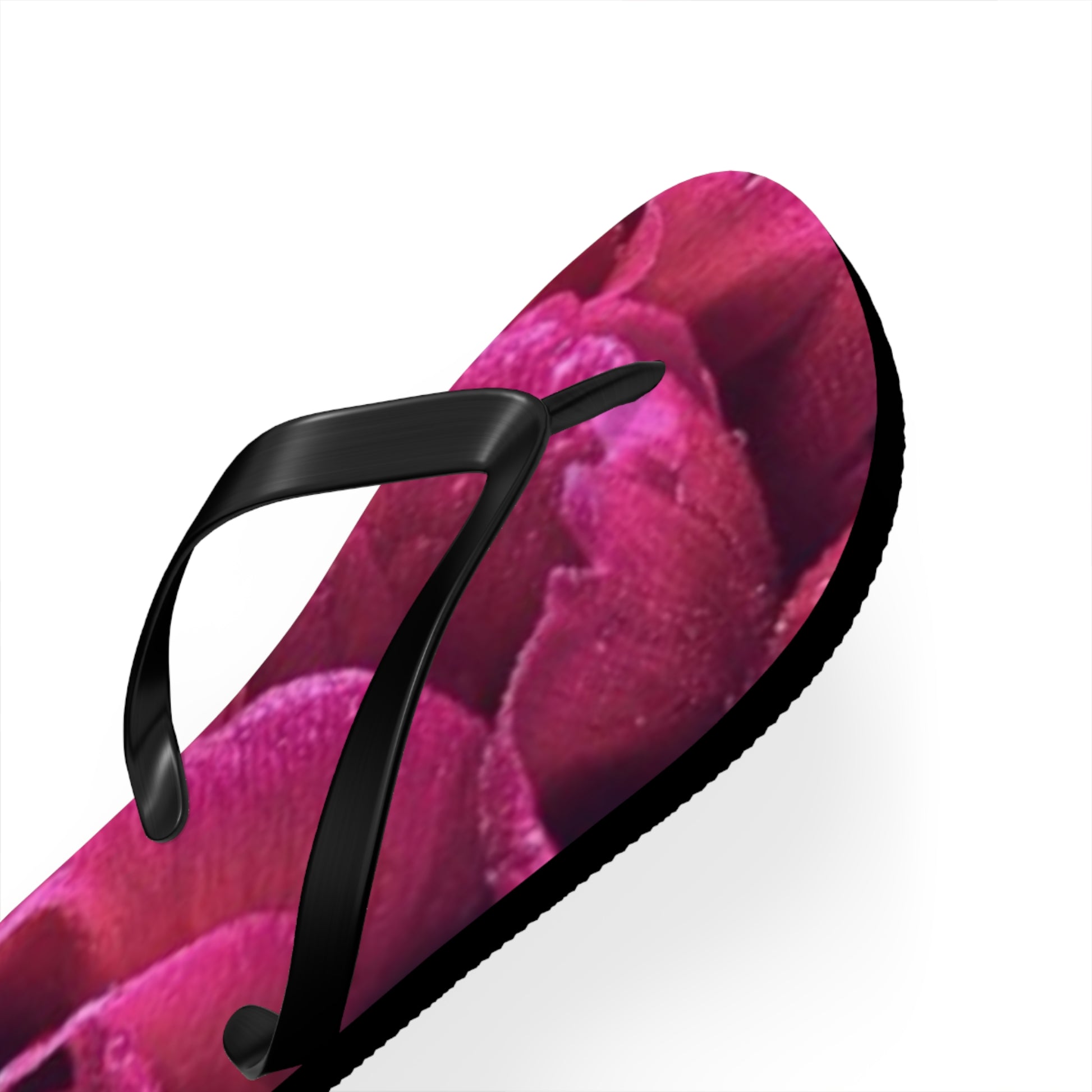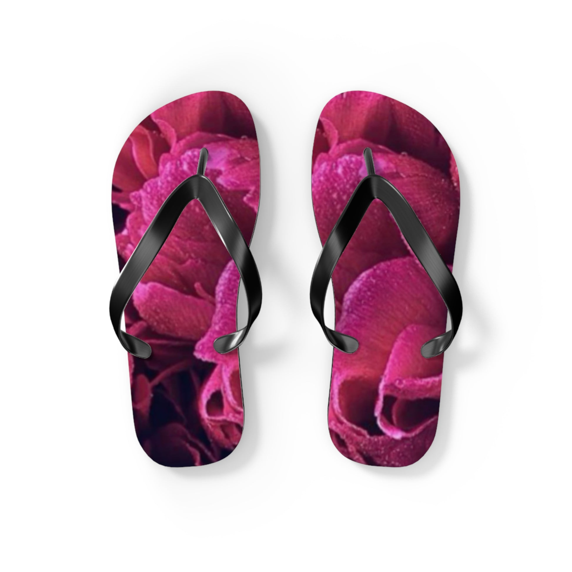 All-day comfort is the name of the game when summer is on. These magenta all over floral design flip flops can now take on your unique designs add some character to your summer escapades. With an easy slip-on design, a cushioned footbed, these flip flops are a guaranteed summer hit.