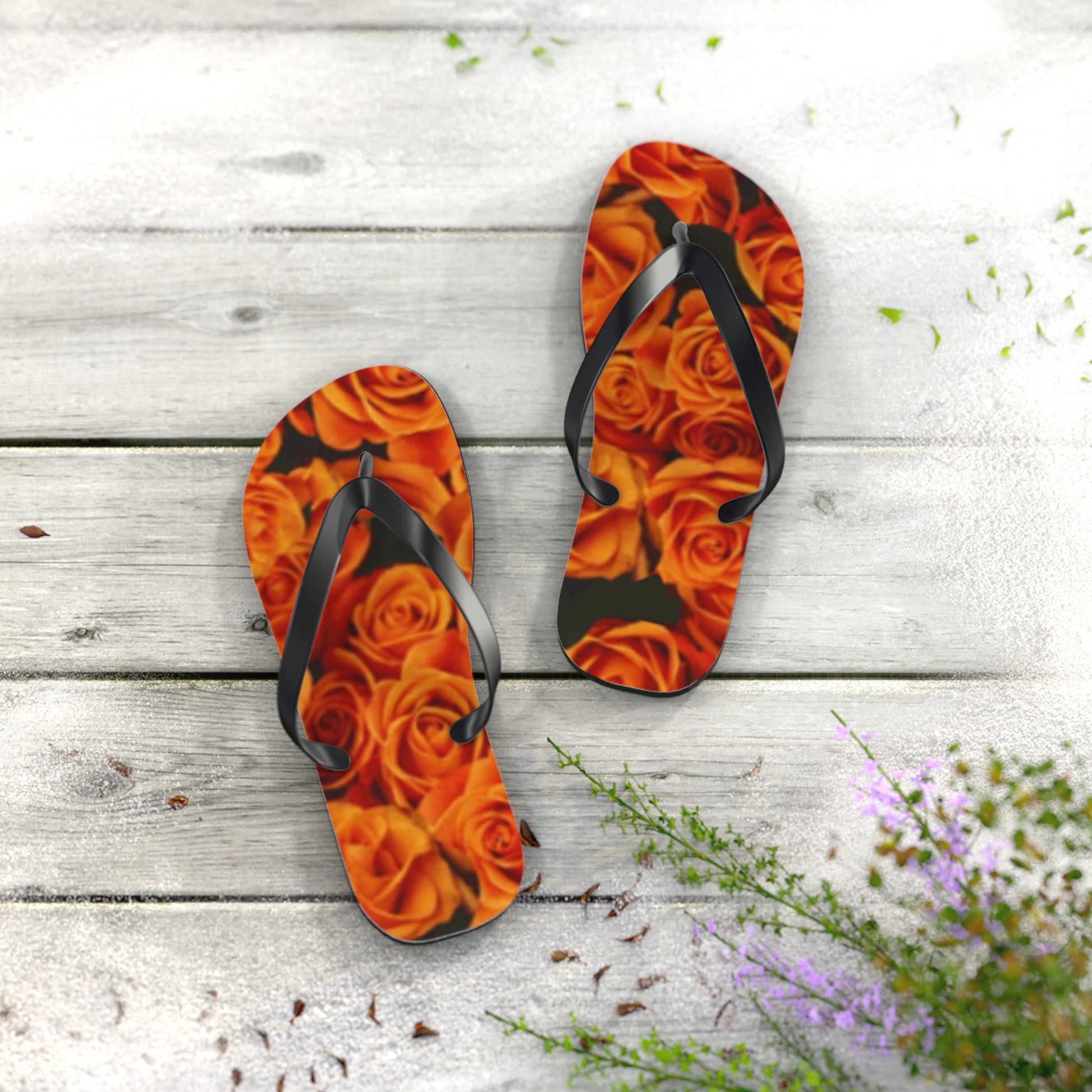 Orange Roses Flip Flops