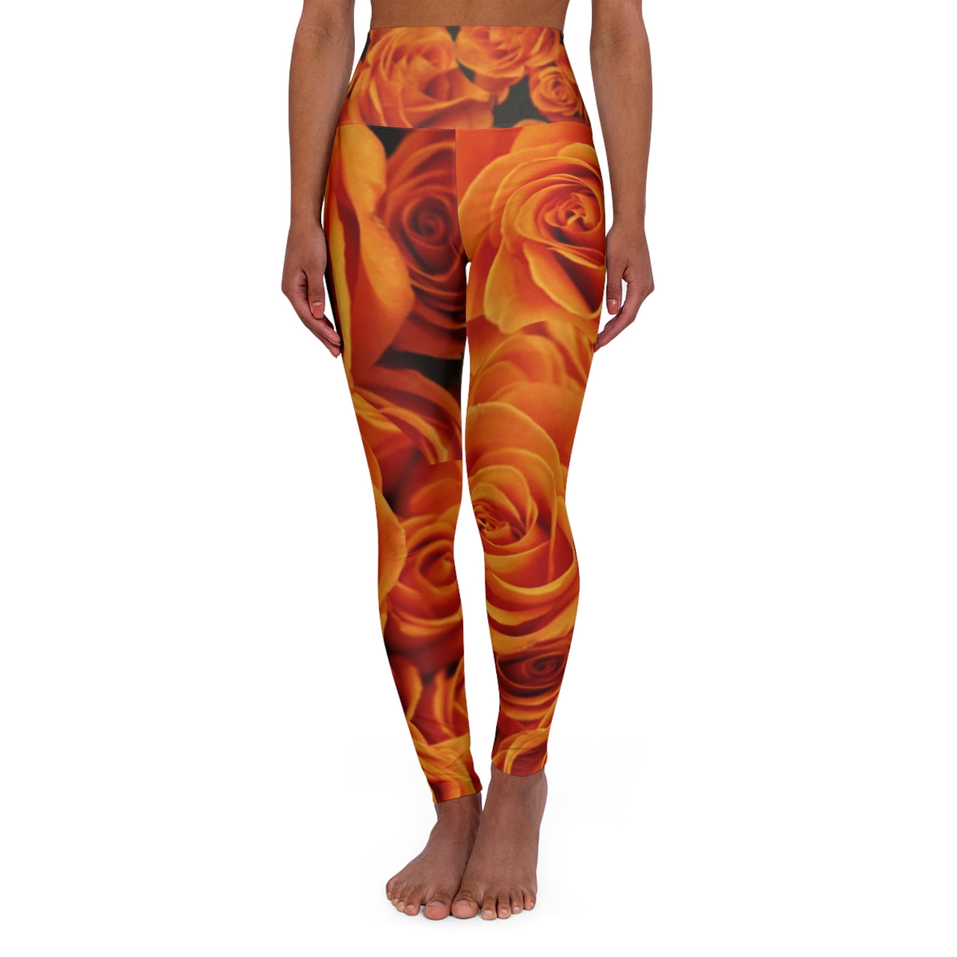 These skinny fitting high-waisted orange roses exercise leggings will take you from workout to store run in comfort and style. They are fully customizable with an all-over print that adds an instant pop to any athleisure wardrobe.