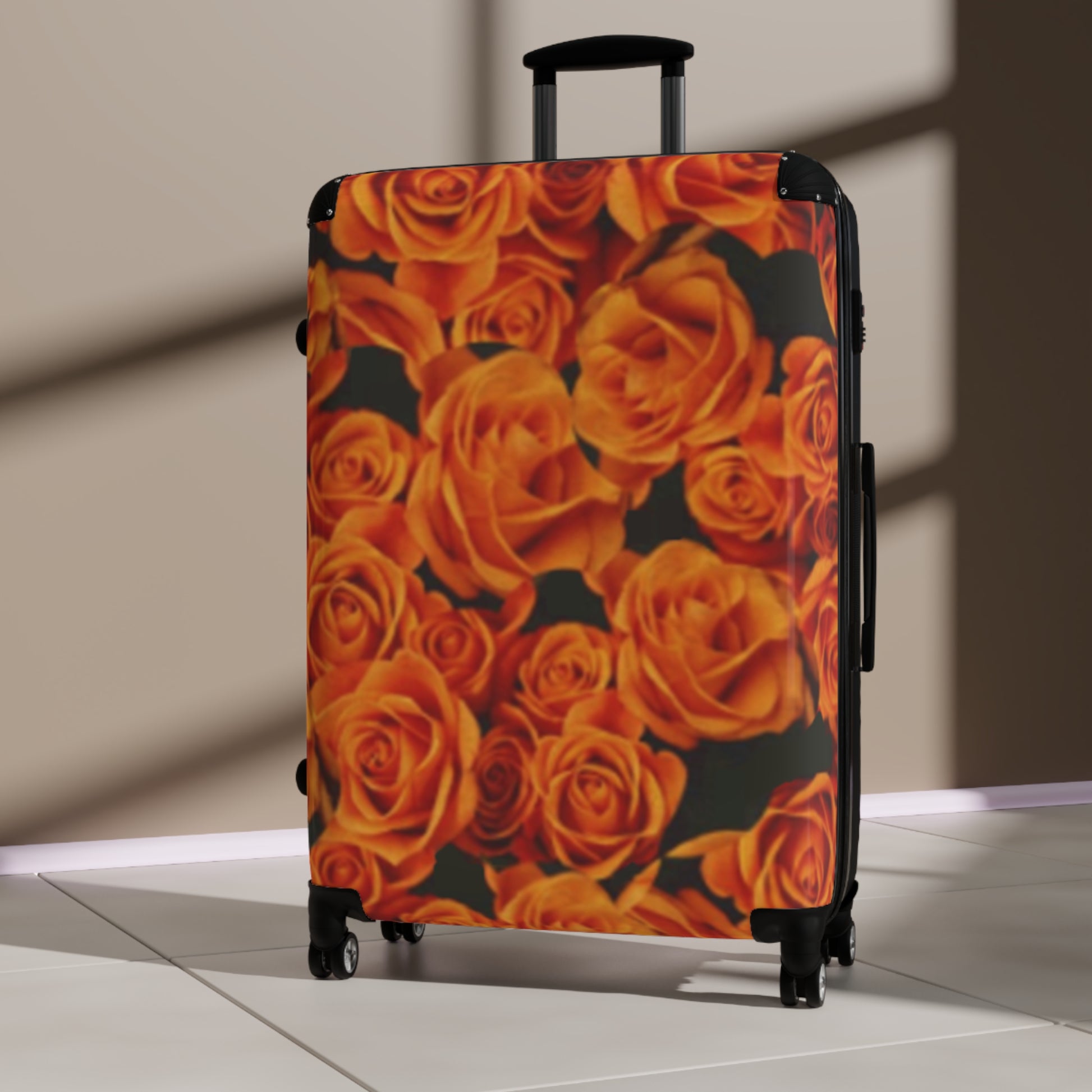This Orange Roses Suitcase is perfect for travelers who want to stand out from the crowd. It offers a durable and lightweight design with vibrant colors that will catch everyone's eye. The inner pockets and extended storage make it easy to keep organized on the go. Ideal for those who love to travel in style or as a thoughtful gift for someone going on a trip.