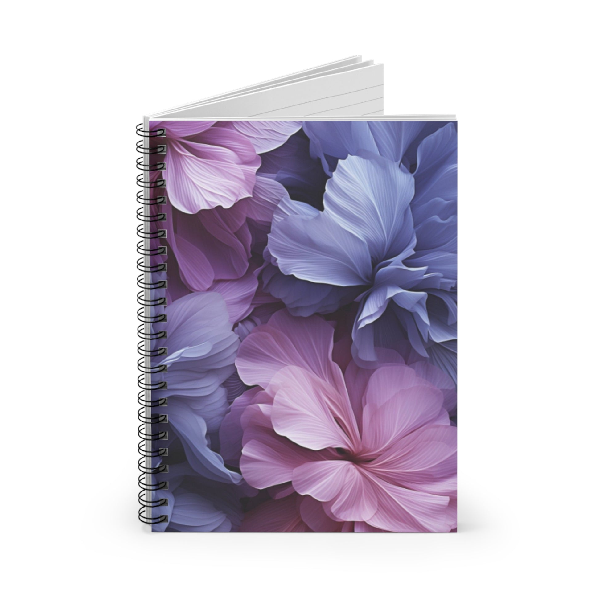 A floral-themed spiral notebook with ruled lines, perfect for writing down thoughts, ideas, and notes. This notebook has a fancy look with its metal spiral binding, document pocket for added storage, and a sturdy construction. Ideal for students, writers, and anyone who loves to jot things down. Perfect for back to school, office use, or as a thoughtful gift for stationery lovers.