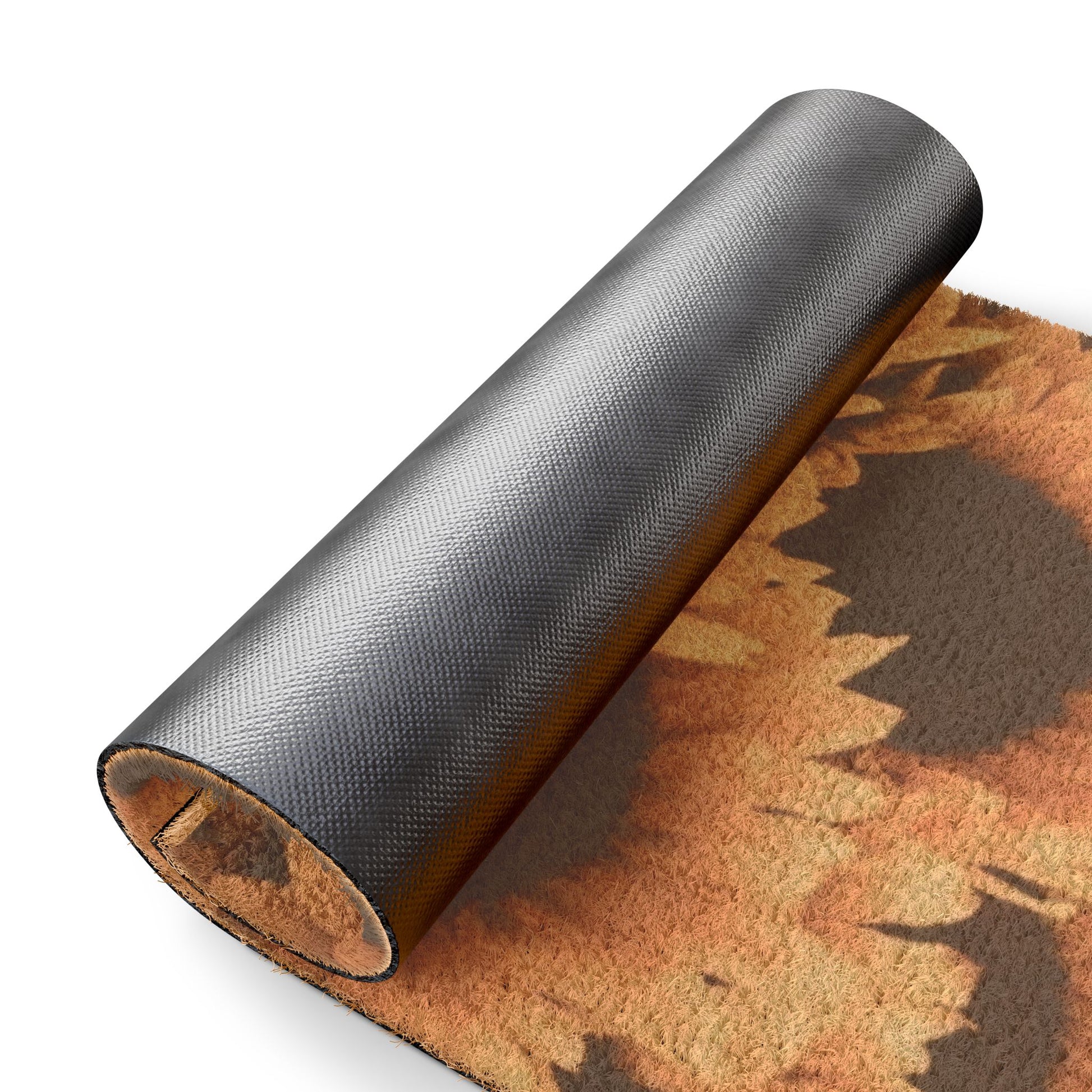 Meet the perfect floral welcoming doormat. Floral mat comes in a 24" x 16" size and is made with Grade A tufted coir coconut fiber, making it perfect for outdoor use. Mat features black vinyl backing for increased stability.