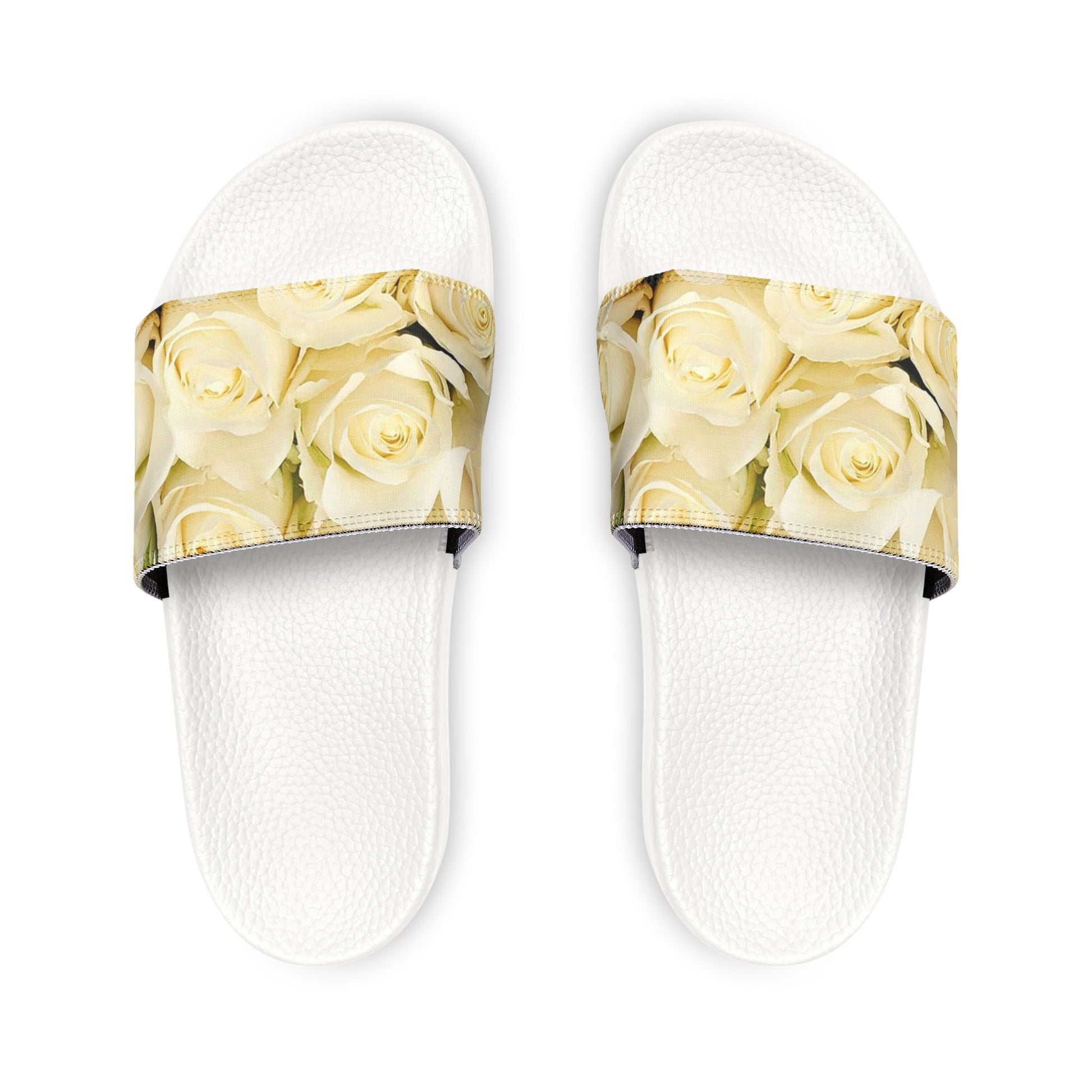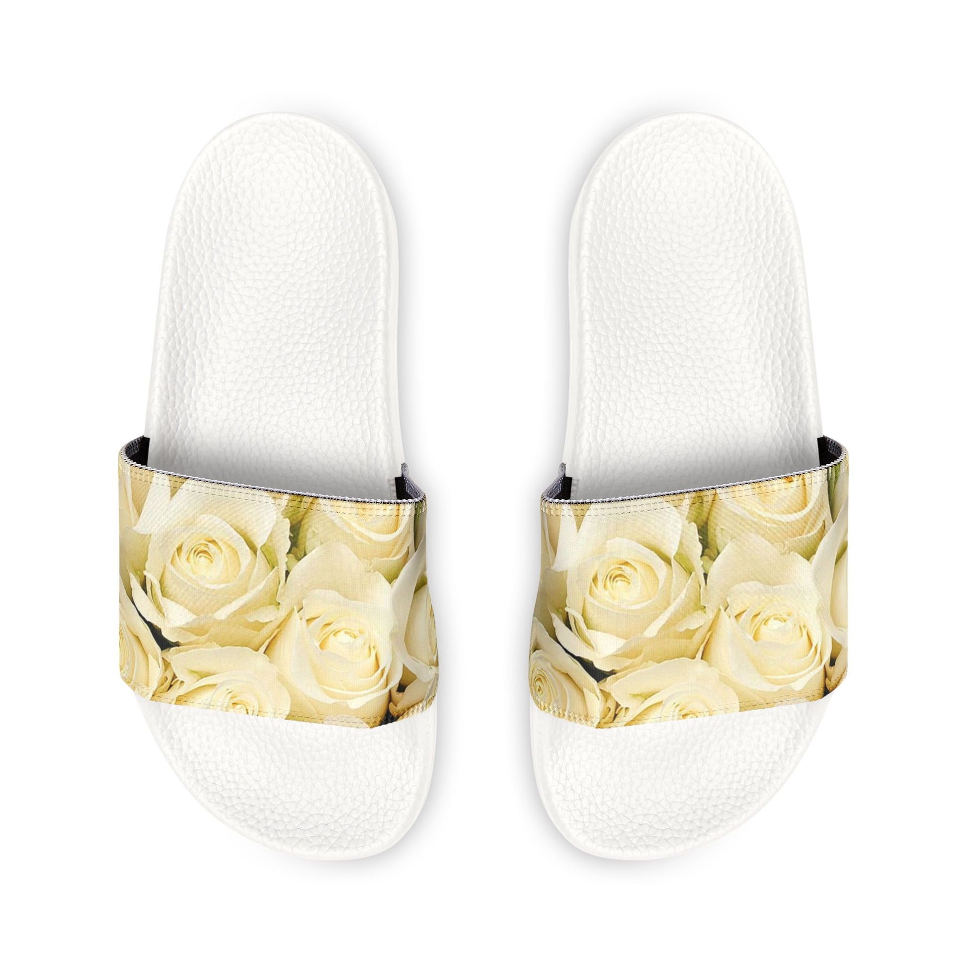 These White Roses Floral Design Sandals are perfect for a stylish and comfortable summer look. The removable straps allow you to switch up your style for any occasion. Designed with a foot curvature that embraces your feet and toes, these sandals are perfect for all-day wear. The lightweight cushioned sole combined with quick-drying and customizable straps make these sandals a must-have for beach trips, summer parties, and everyday wear. Ideal for women who love floral designs and want comfortable and stylish footwear.