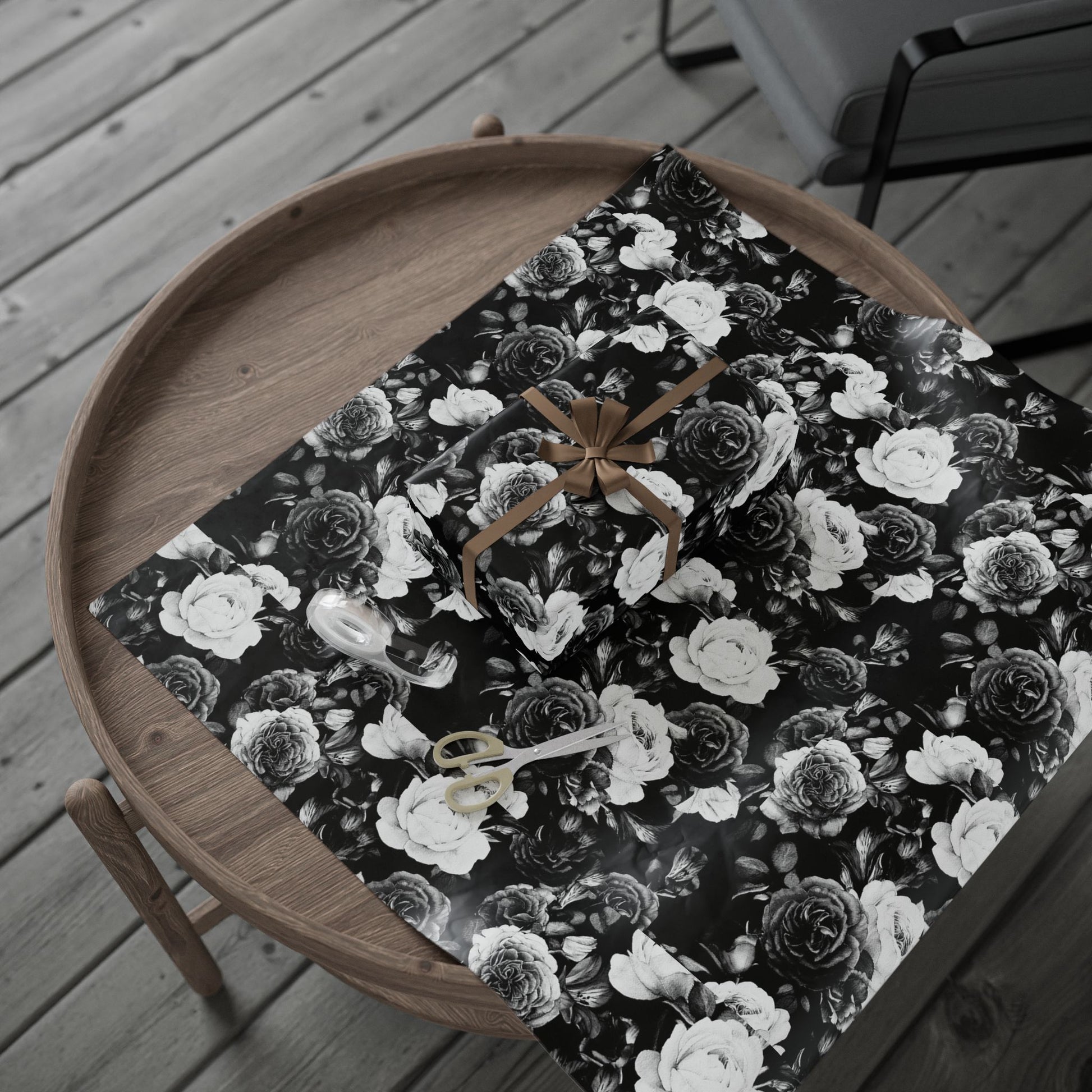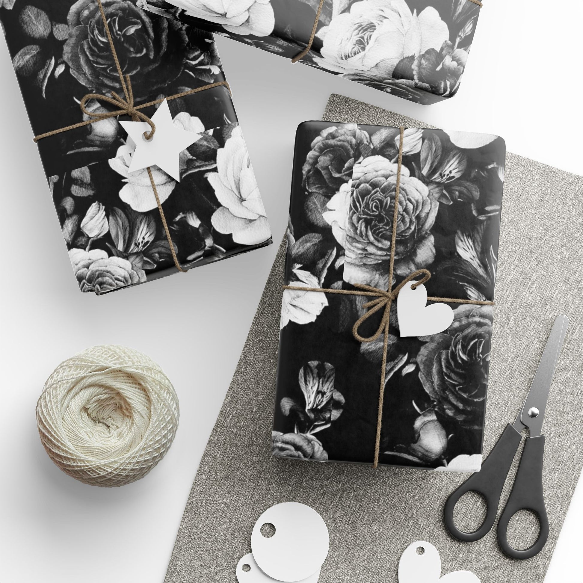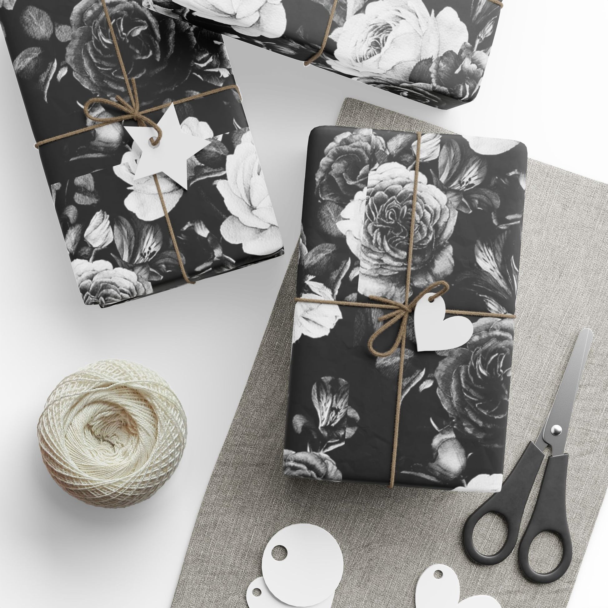 Elegant Black and White Floral Design Wrapping Paper, perfect for adding a touch of sophistication to your gifts. Ideal for those who appreciate classic and timeless patterns. Great for birthdays, weddings, anniversaries, and any special occasion.