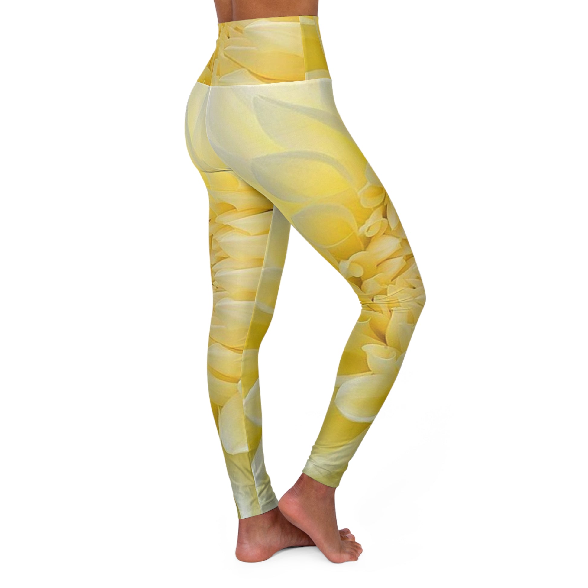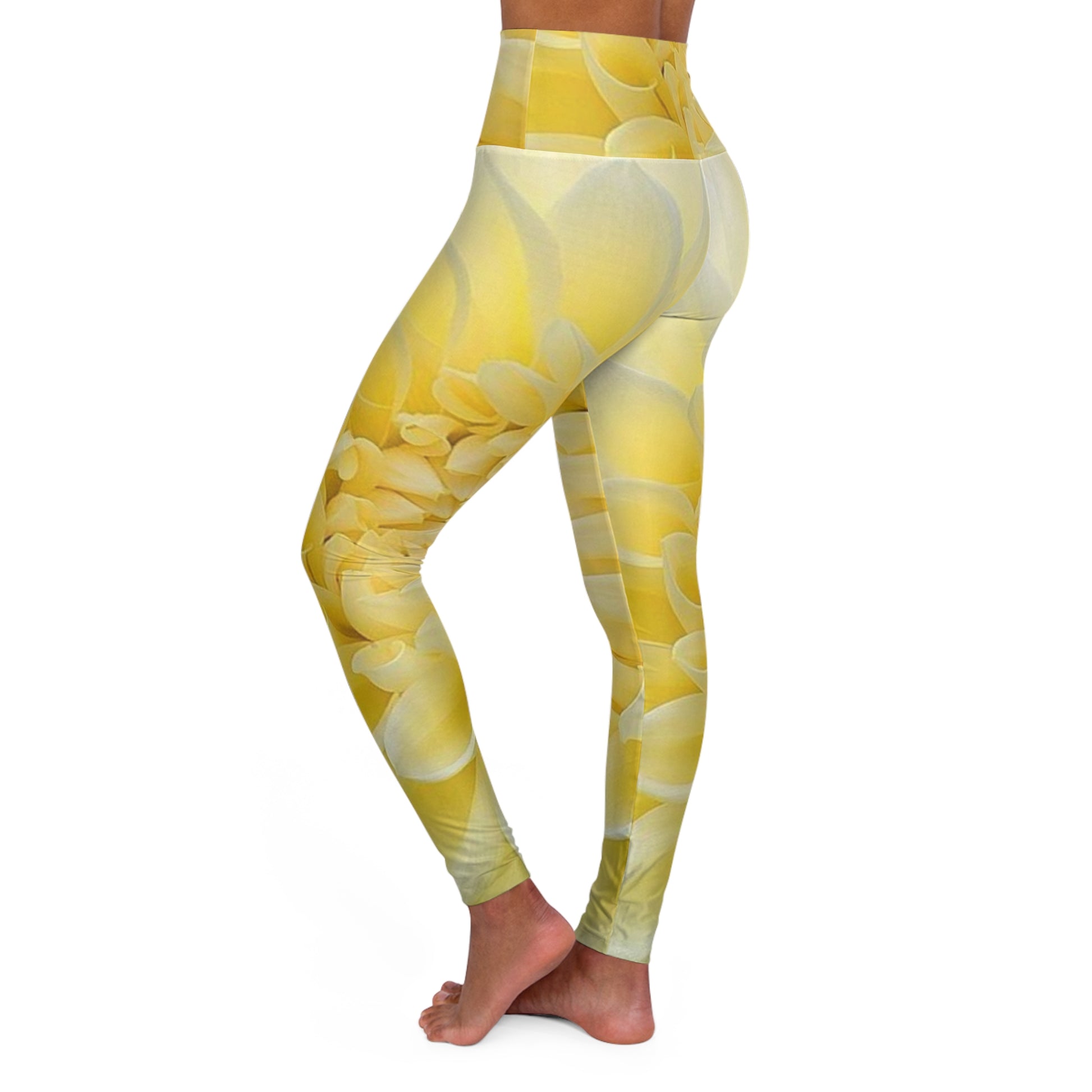 These yellow dahlia skinny fitting high-waisted yoga leggings will take you from workout to store run in comfort and style. They are fully customizable with an all-over print that adds an instant pop to any athleisure wardrobe.